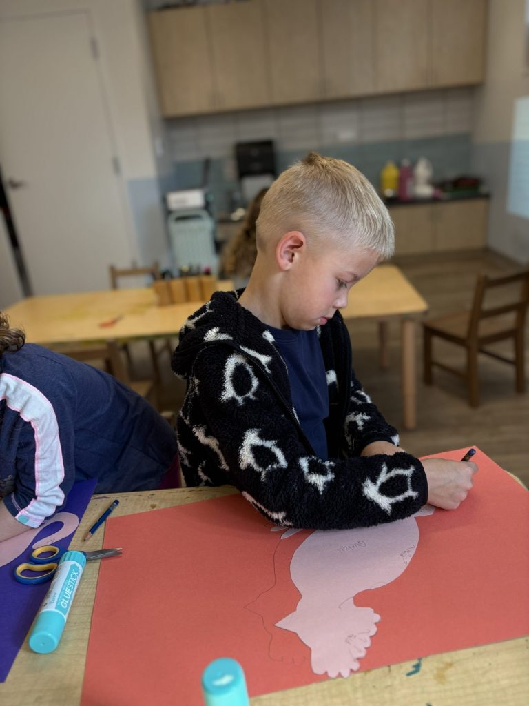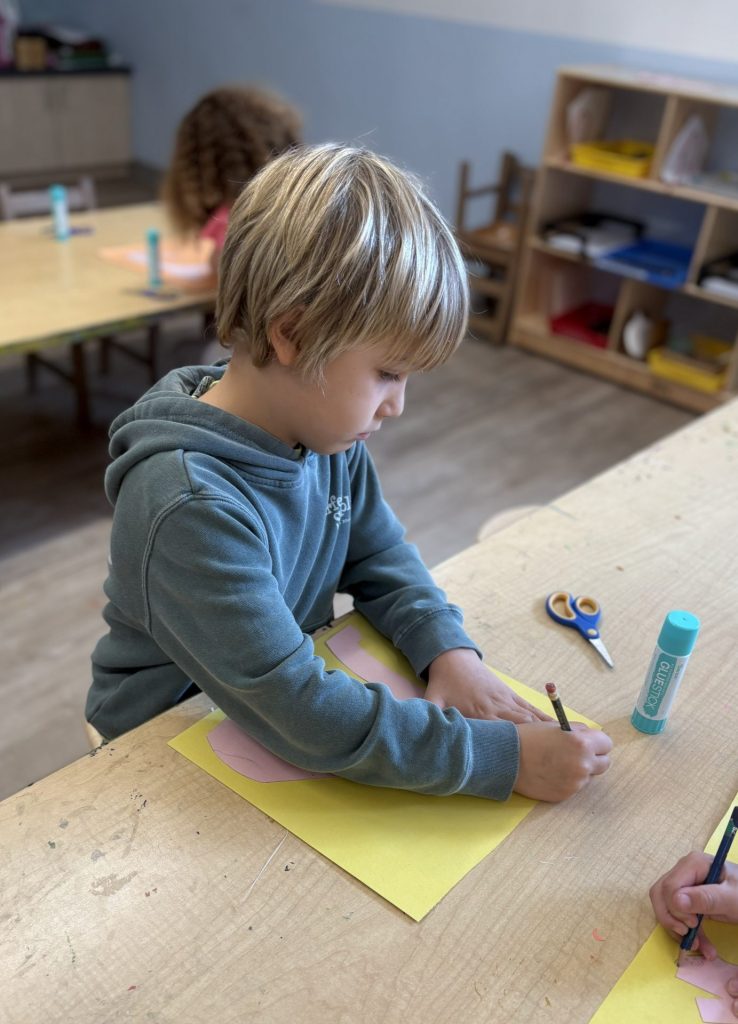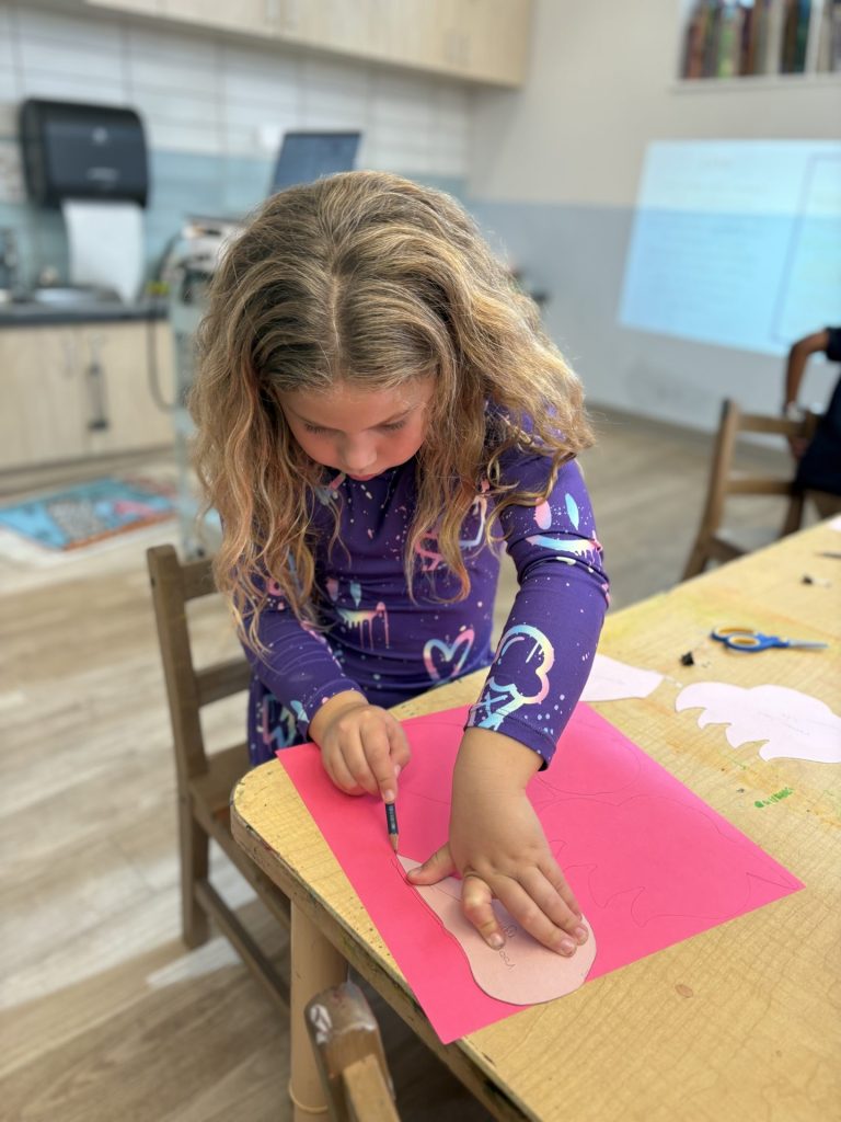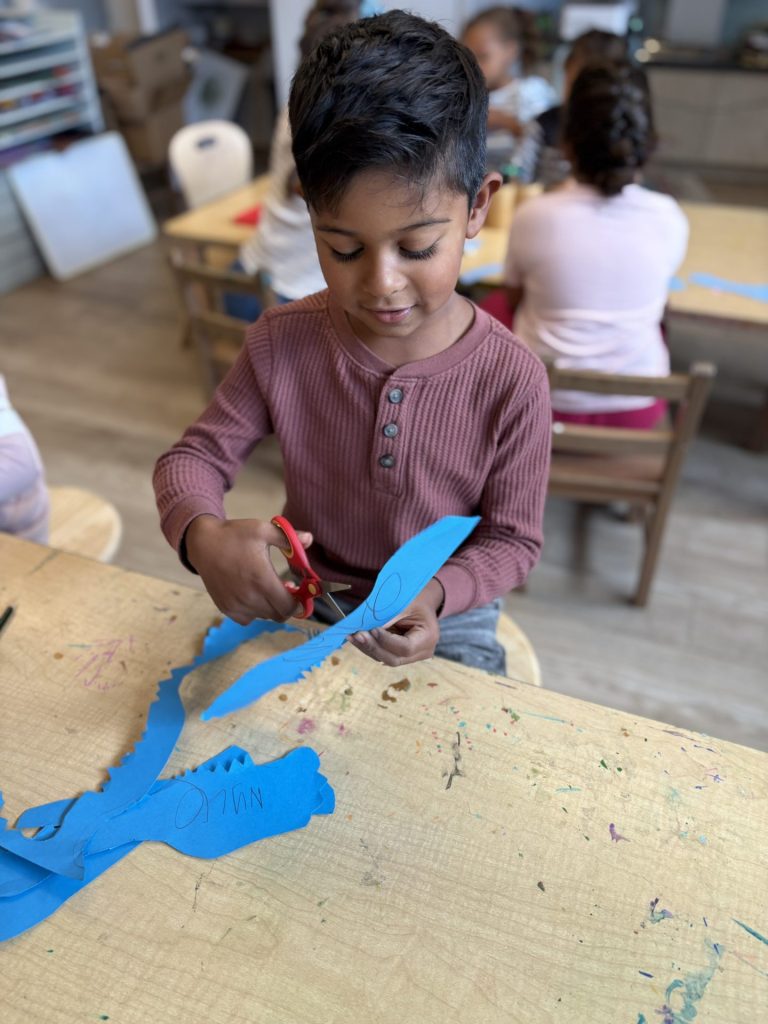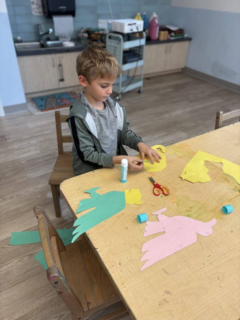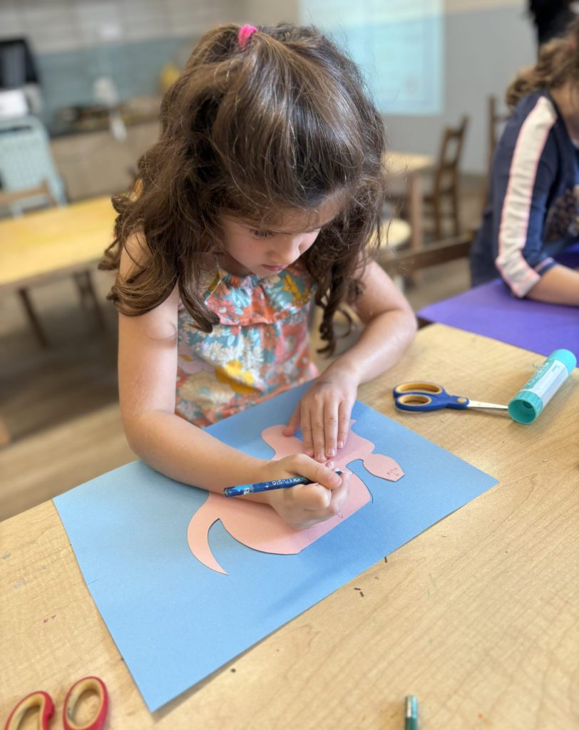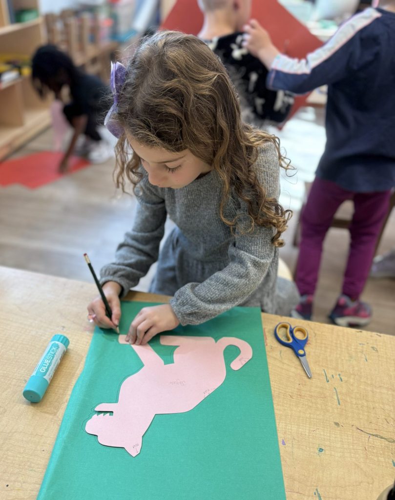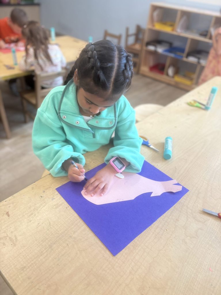The kindergarteners started off by learning about our second element of art this year- lines! We practiced making many different kinds of lines, such as wavy, curly, and zigzags. We also discussed how lines are so important in art because they create shapes, movement, and other details in works of art. The first step was to trace two animals onto a colored piece of paper. The animals were an armadillo, a mexican wolf, a golden eagle, a crocodile, or a jaguar, all of which are native to Mexico. They cut out their animals, and then switched their heads. The students also added horns, wings, antlers, and tails to add even more details to their alebrijes. Once everything was glued together, they decorated their alebrijes with all sorts of line work to give their alebrijes the signature colorful look.