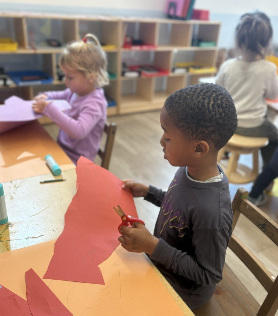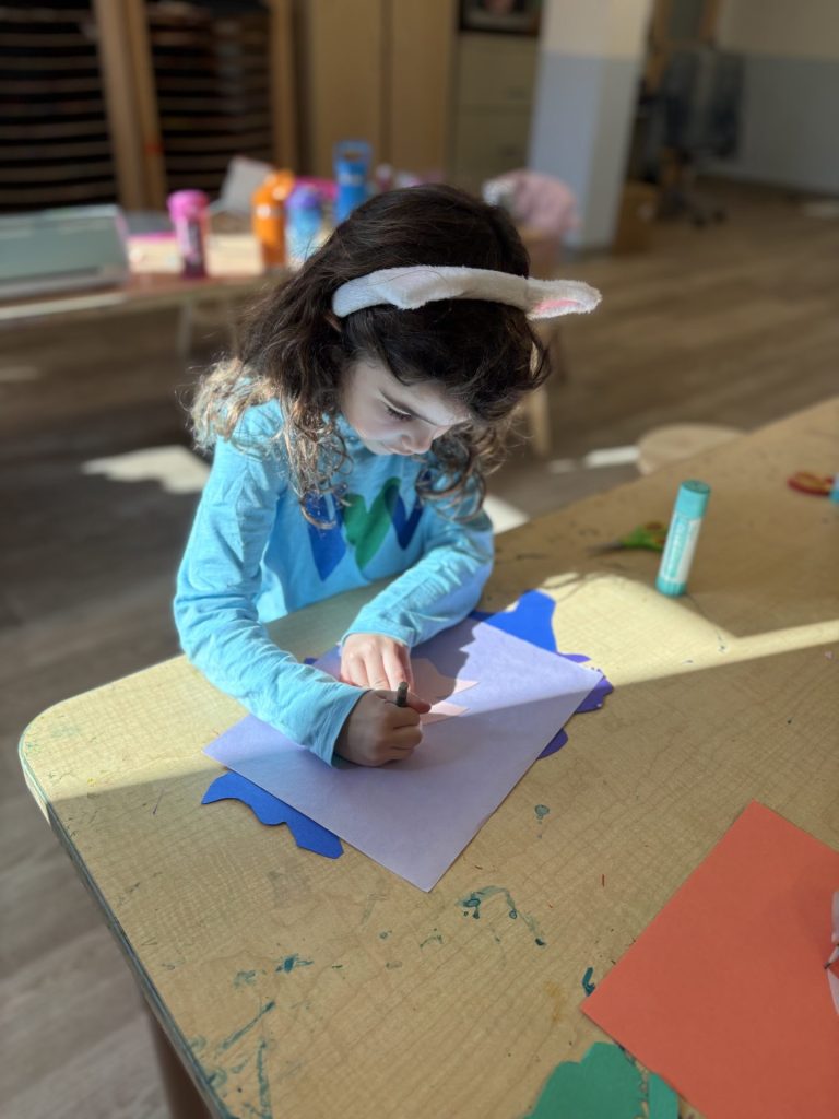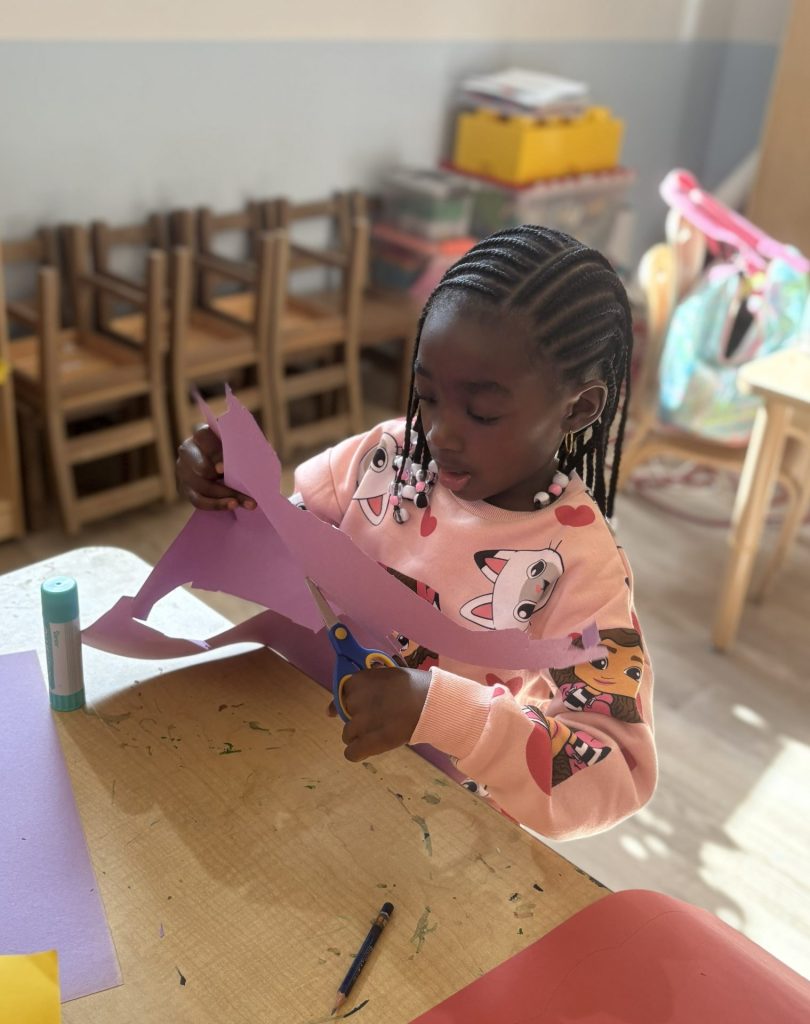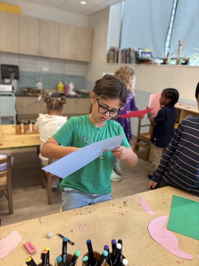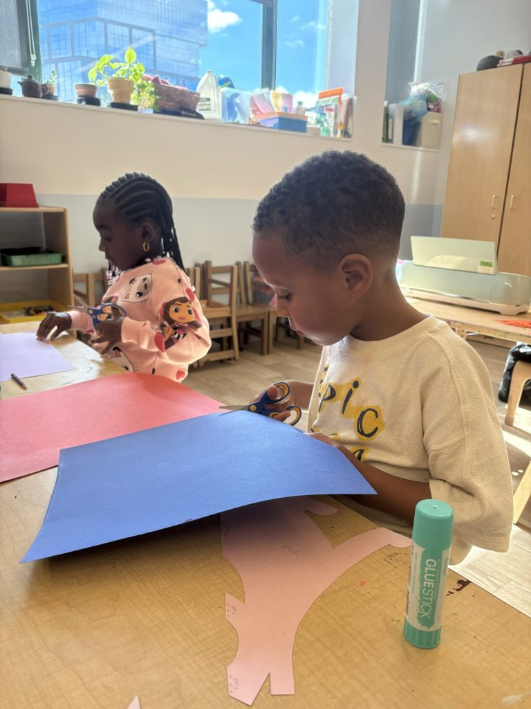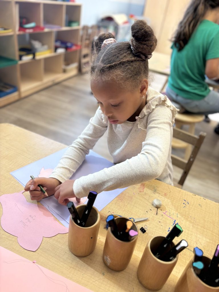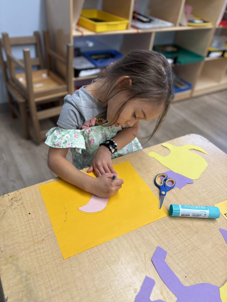 The kindergarteners started off by learning about our second element of art this year- lines! We practiced making many different kinds of lines, such as wavy, curly, and zigzags. We also discussed how lines are so important in art because they create shapes, movement, and other details in works of art. The first step was to trace two animals onto a colored piece of paper. The animals were an armadillo, a mexican wolf, a golden eagle, a crocodile, or a jaguar, all of which are native to Mexico. They cut out their animals, and then switched their heads. The students also added horns, wings, antlers, and tails to add even more details to their alebrijes. Once everything was glued together, they decorated their alebrijes with all sorts of line work to give their alebrijes the signature colorful look.