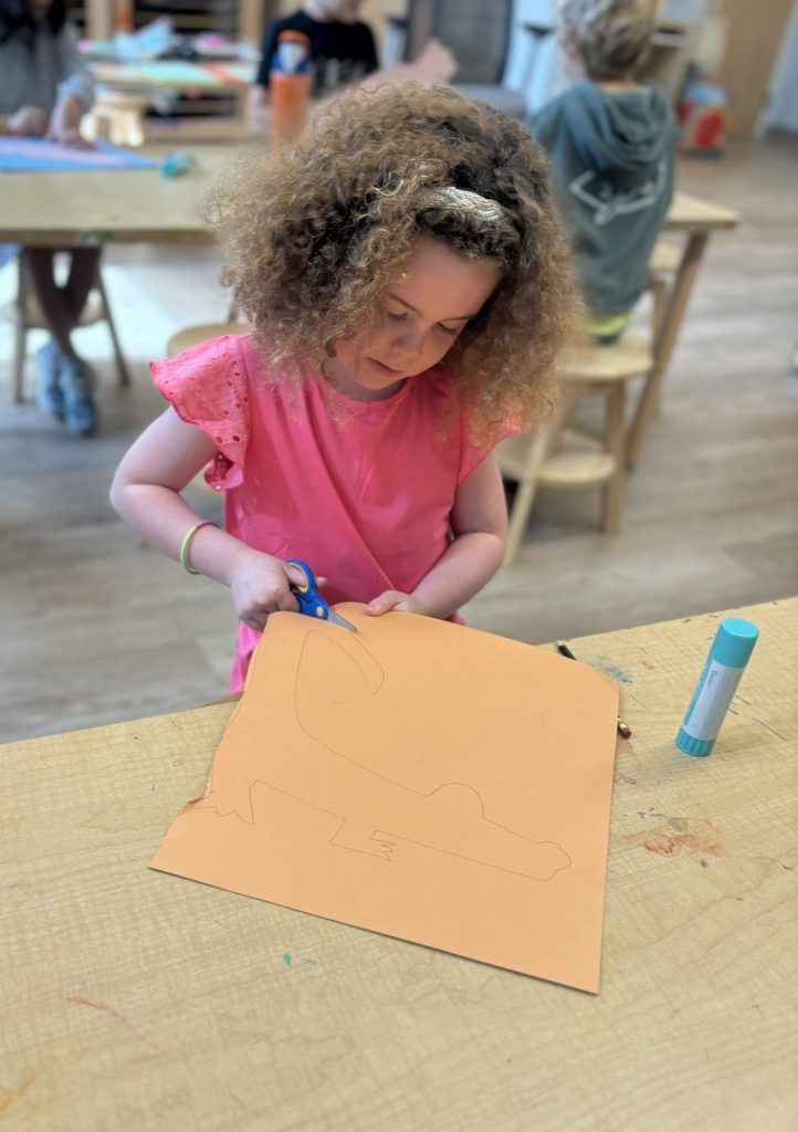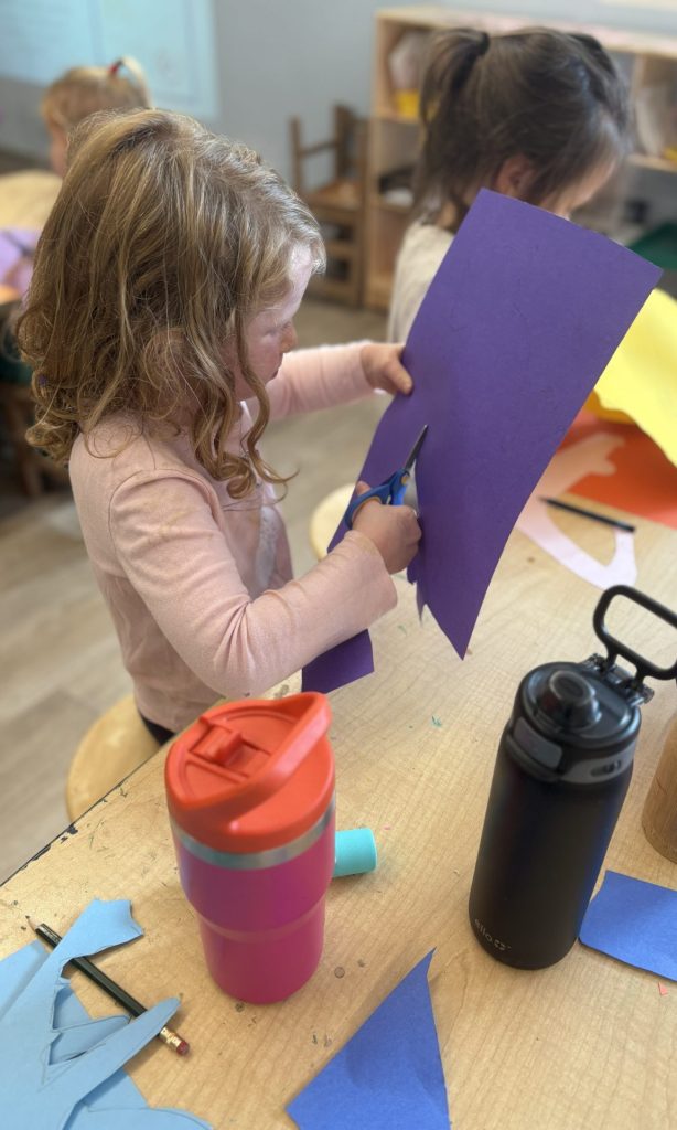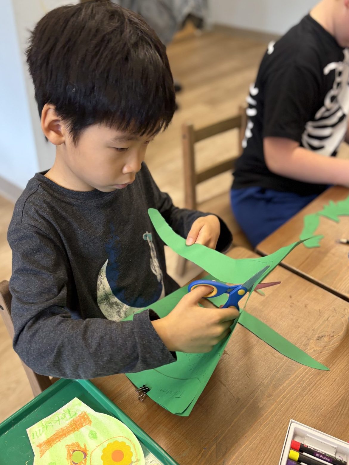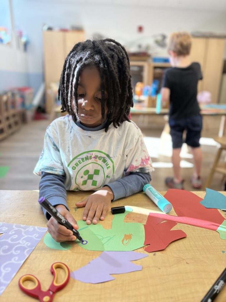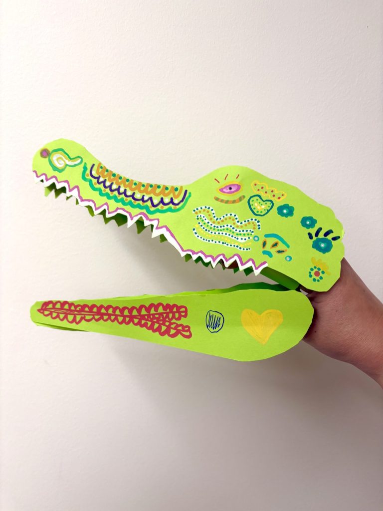 In addition to learning about line, the elm class learned how to use lines to make patterns. We defined the word ‘motif’, just a repeating element of either lines, shapes, or colors. The elm students used what they learned to make alebrije puppets! The could choose from a jaguar, crocodile, rooster, chihuahua, or dragon. They cut out all the parts of their puppets, added lots of colors, lines, and patterns with paint pens, and glued it all together. Even though most students used the same templates, each puppet was so unique! It was a fun project to celebrate Pedro’s legacy.