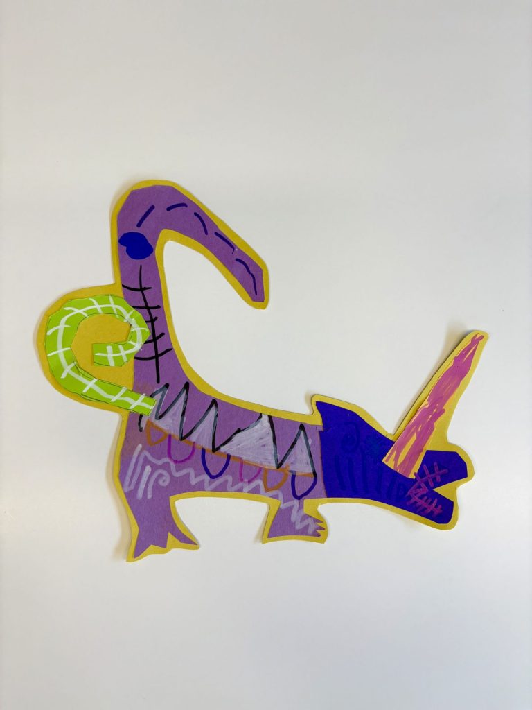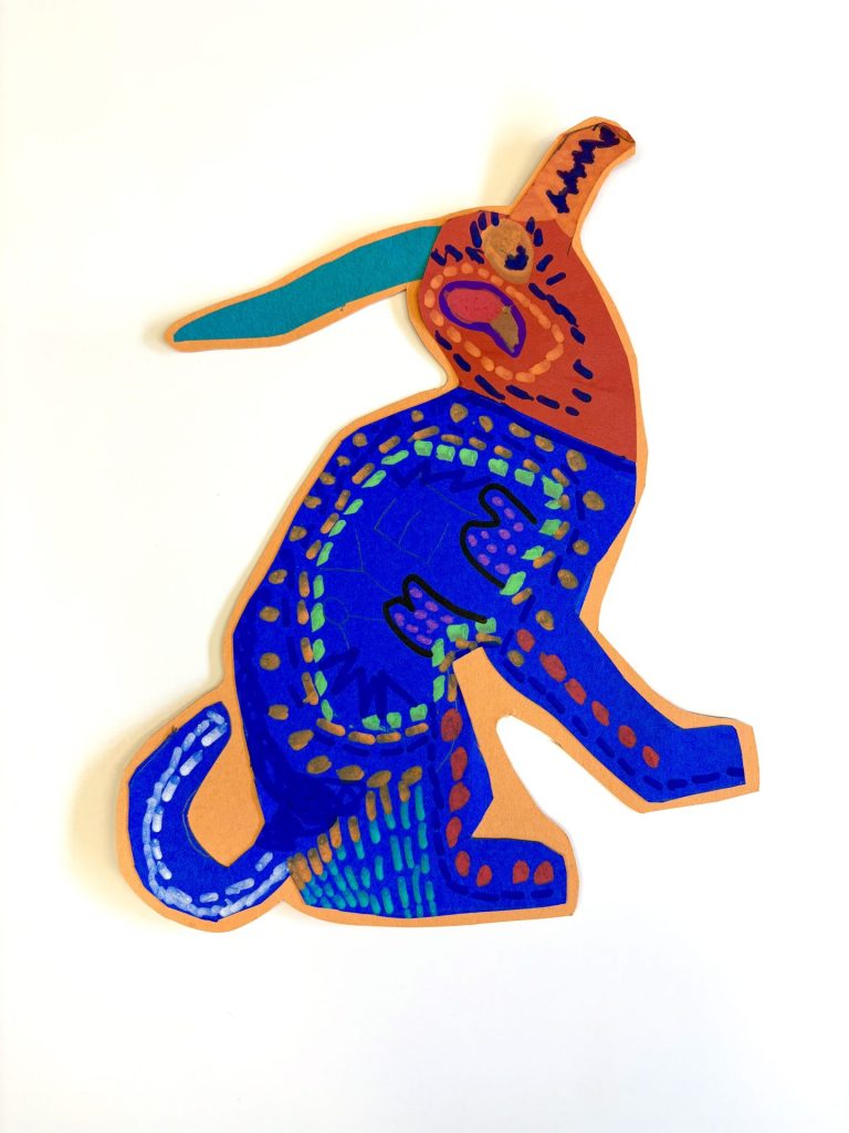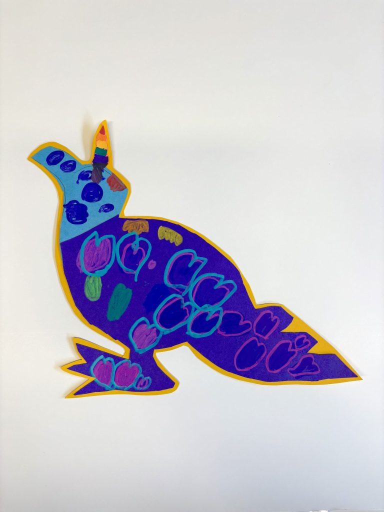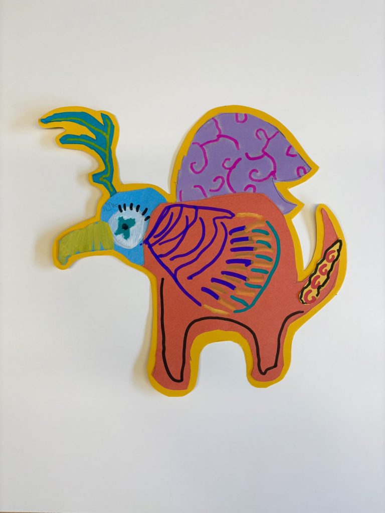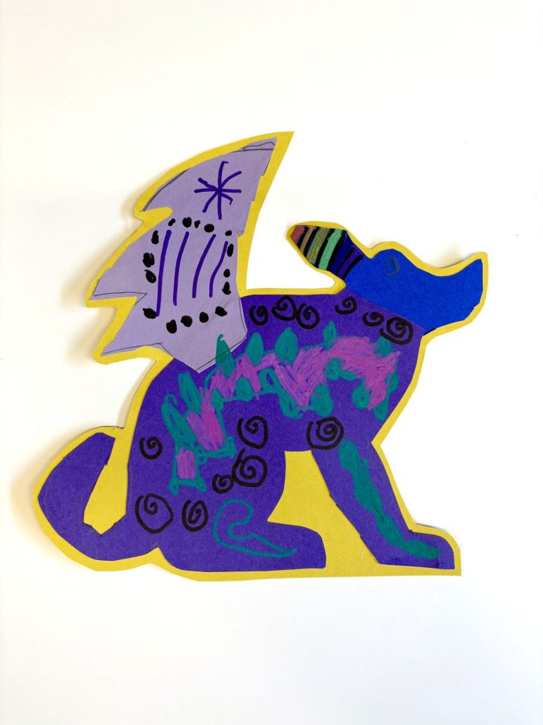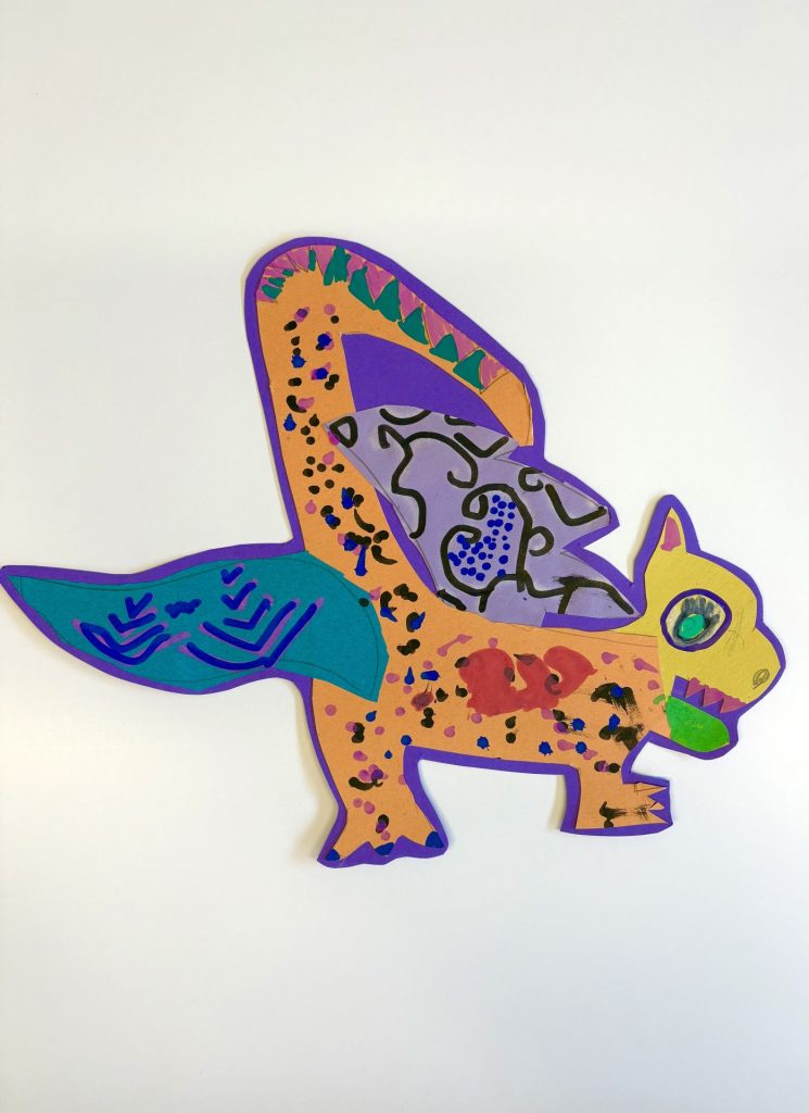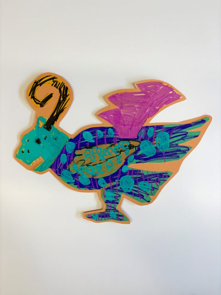 Last month was all about line, patterns, and Mexican artist Pedro Linares López. Pedro came from a family of cartonería artists- artists who work with paper mache. After becoming very ill, Pedro had a fever dream of colorful, fantastical creatures that combined features of all different animals, such as a winged donkey and a rooster with a bull’s horns. Once he recovered, Pedro began sculpting the strange animals from his dream, and called them ‘alebrijes’. For our art project this month, we created our own alebrijes, and learned how to use lines and patterns to decorate them!