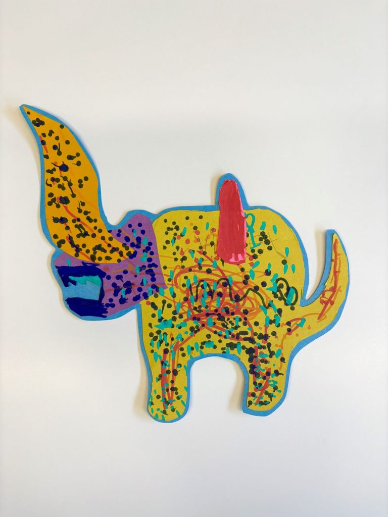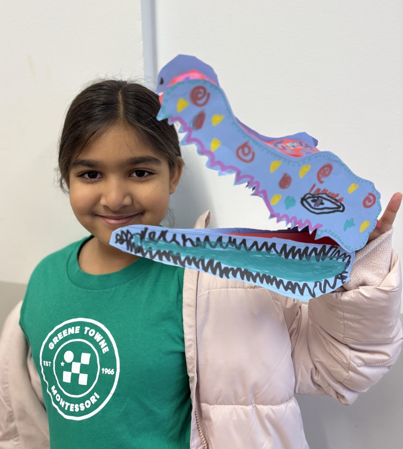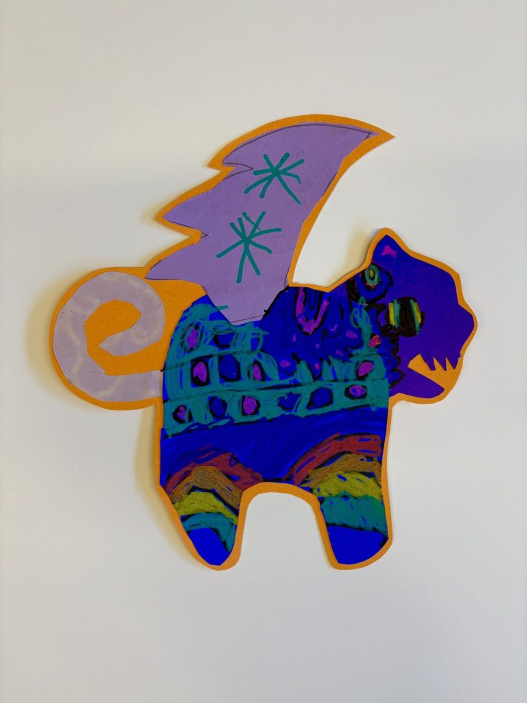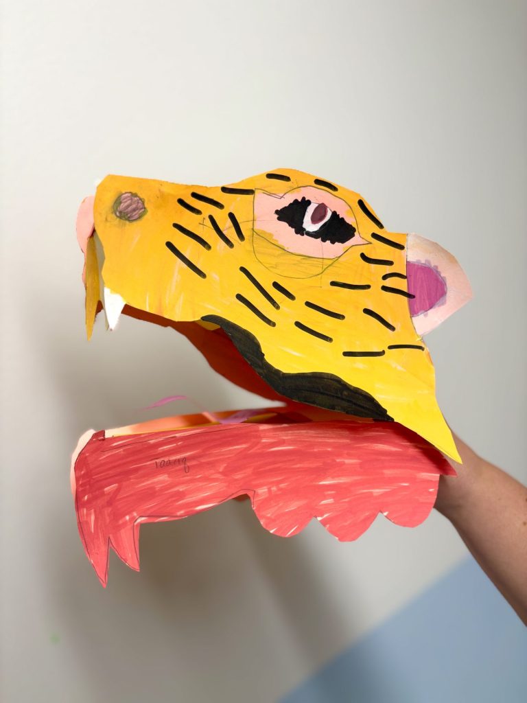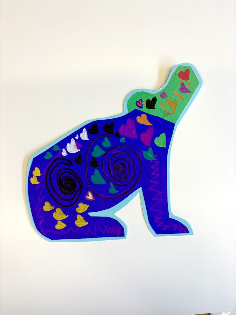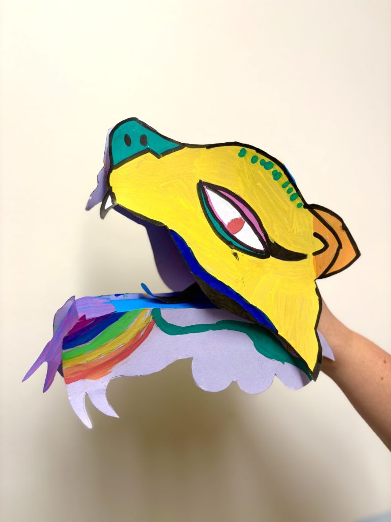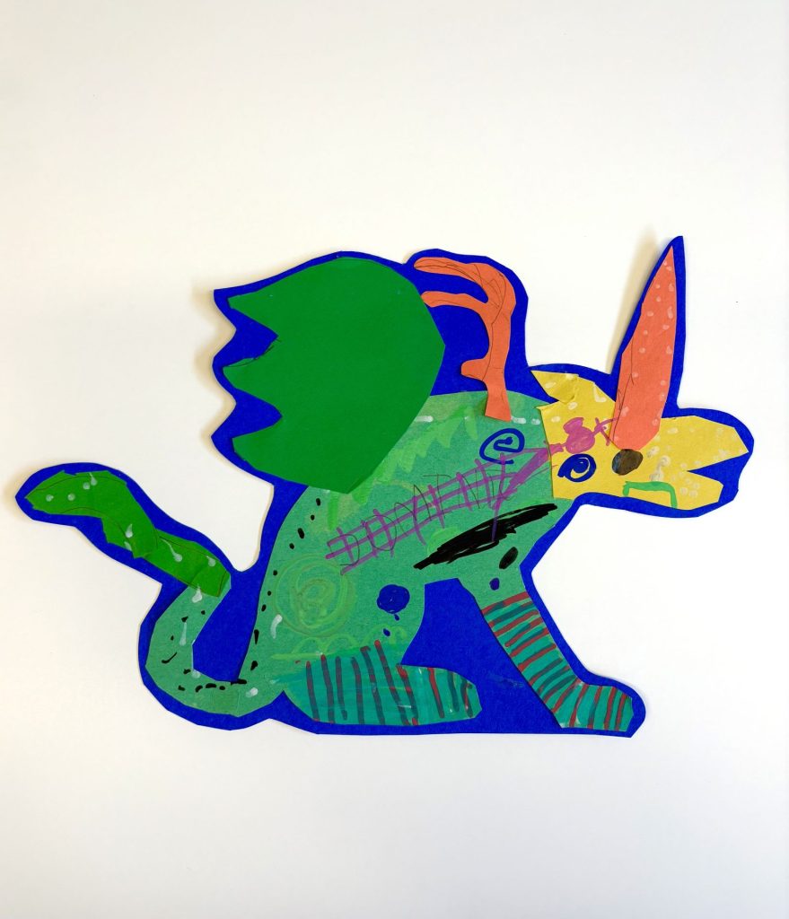 Last month was all about line, patterns, and Mexican artist Pedro Linares López. Pedro came from a family of cartonería artists- artists who work with paper mache. After becoming very ill, Pedro had a fever dream of colorful, fantastical creatures that combined features of all different animals, such as a winged donkey and a rooster with a bull’s horns. Once he recovered, Pedro began sculpting the strange animals from his dream, and called them ‘alebrijes’. For our art project this month, we created our own alebrijes, and learned how to use lines and patterns to decorate them!