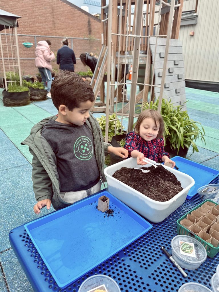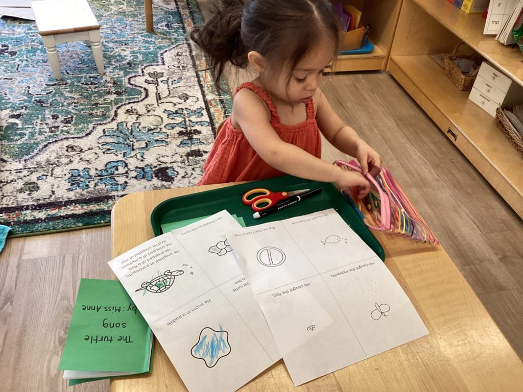 April has been buzzing with activity in the classroom and the outdoors. We’ve enjoyed some of the warm weather and had the opportunity to plant seeds and sort for worms during Earth Week activities. In the classroom, our popular “I Had a Little Turtle” song, turned in to a book that could be colored, cut, and stapled to be taken home. We’ve enjoyed several Spring Birthdays and welcomed parent guests to our celebration circle. It has also been a good time in the school year to refresh and review work that has been introduced earlier in the year, practice it, and work towards mastery.