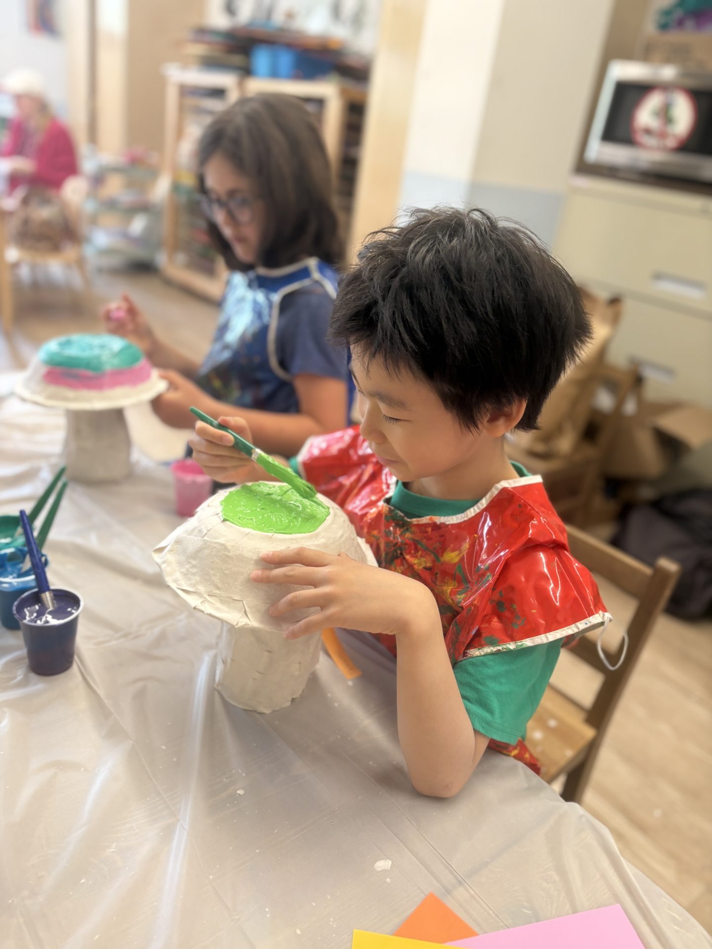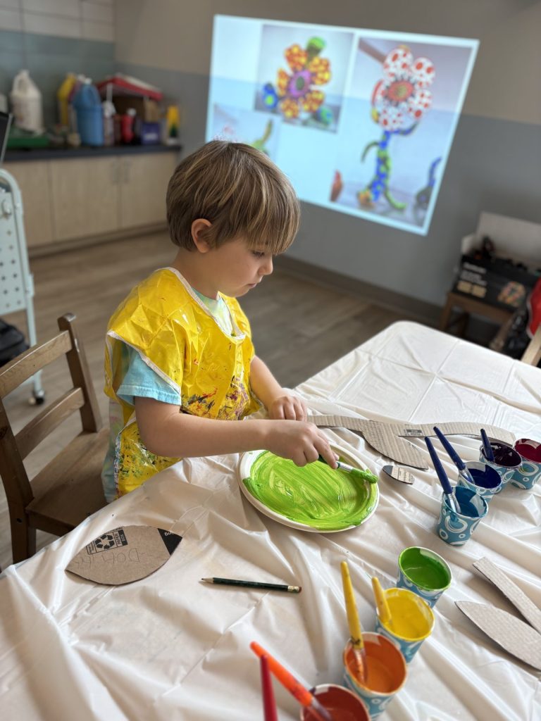 April was all about polka dots, patterns, and protecting our planet! To celebrate Earth month, our art project was made out of recycled materials like cardboard, packaging paper, and water bottles. Yayoi Kusama’s flower sculptures and mushroom paintings were the perfect inspiration pieces for this month!