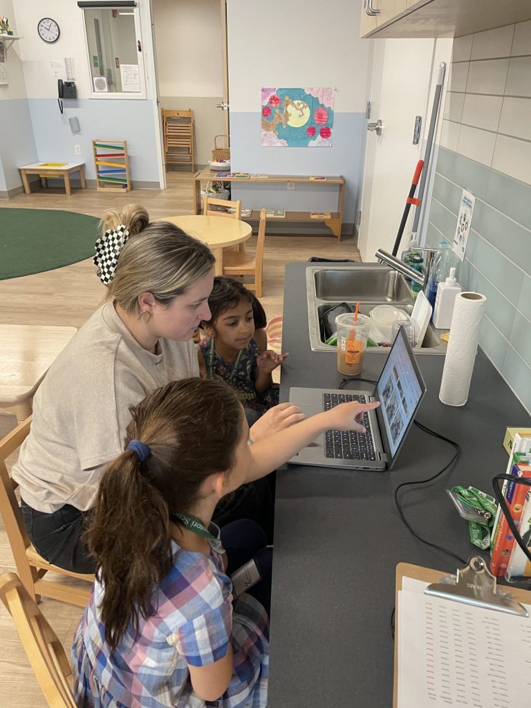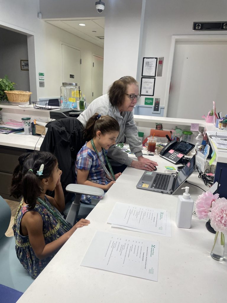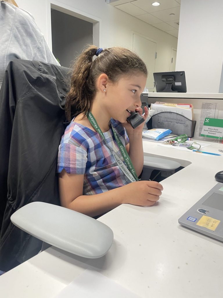 “We had the BEST time today! We started the morning by greeting students as they arrived, then teamed up with Ms. Eileen to call each classroom for attendance.