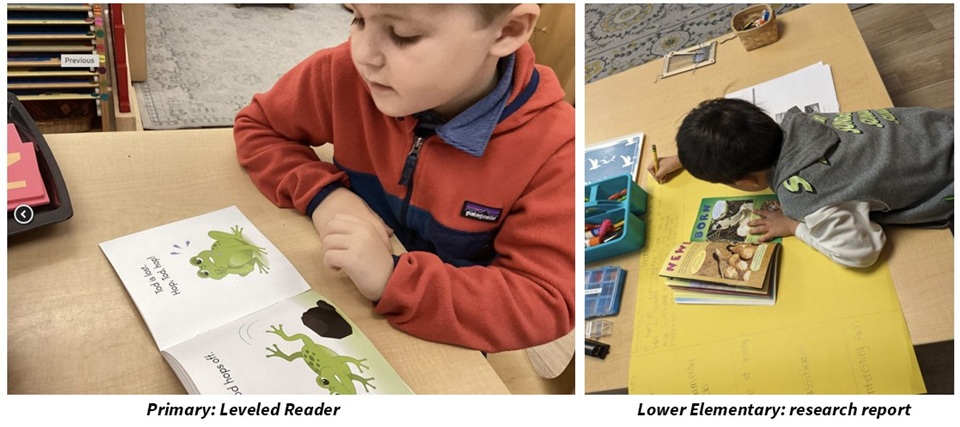 - Lower Elementary (6–9): Grows through cultural lessons, reading, writing, and word study work.