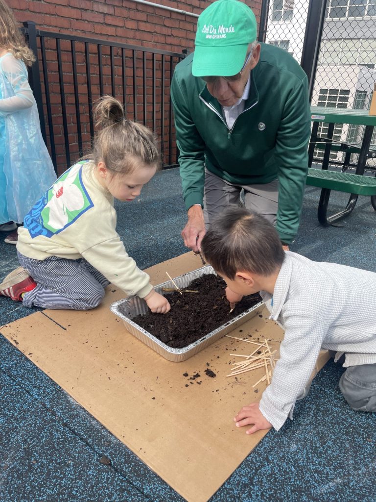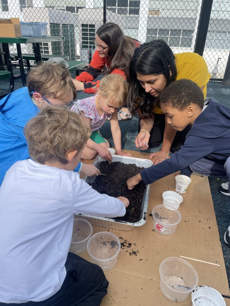 Primary classes participated in a number of activities: worm sorting and setting up a new worm bin, planting lettuce and greens to grow at home, and planting seeds and potted plants including herbs and pansies. A special thank you to the Geyelin family for donating the pansies!