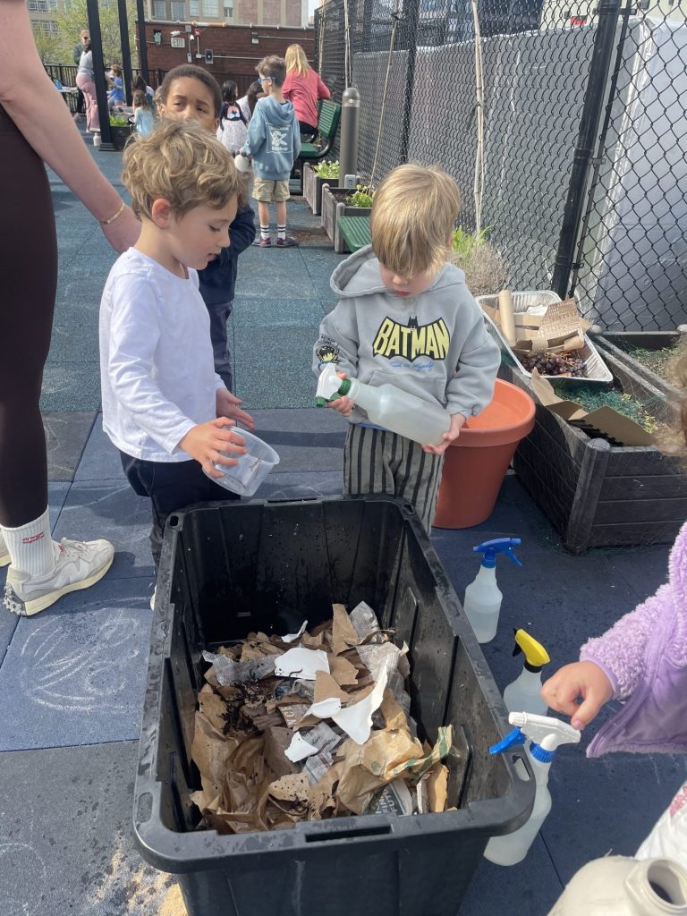 Looking for worms is always a big hit. Digging in the dirt is so healing, especially for city kids! The children really enjoy collecting worms in their cups and adding them back to the new vermicompost bin. They were then able to add shredded brown paper and water to help the worms begin a whole new year’s worth of compost that will be ready to sort next year.
