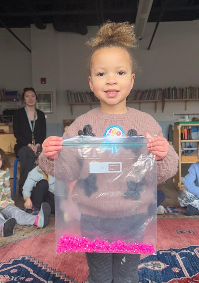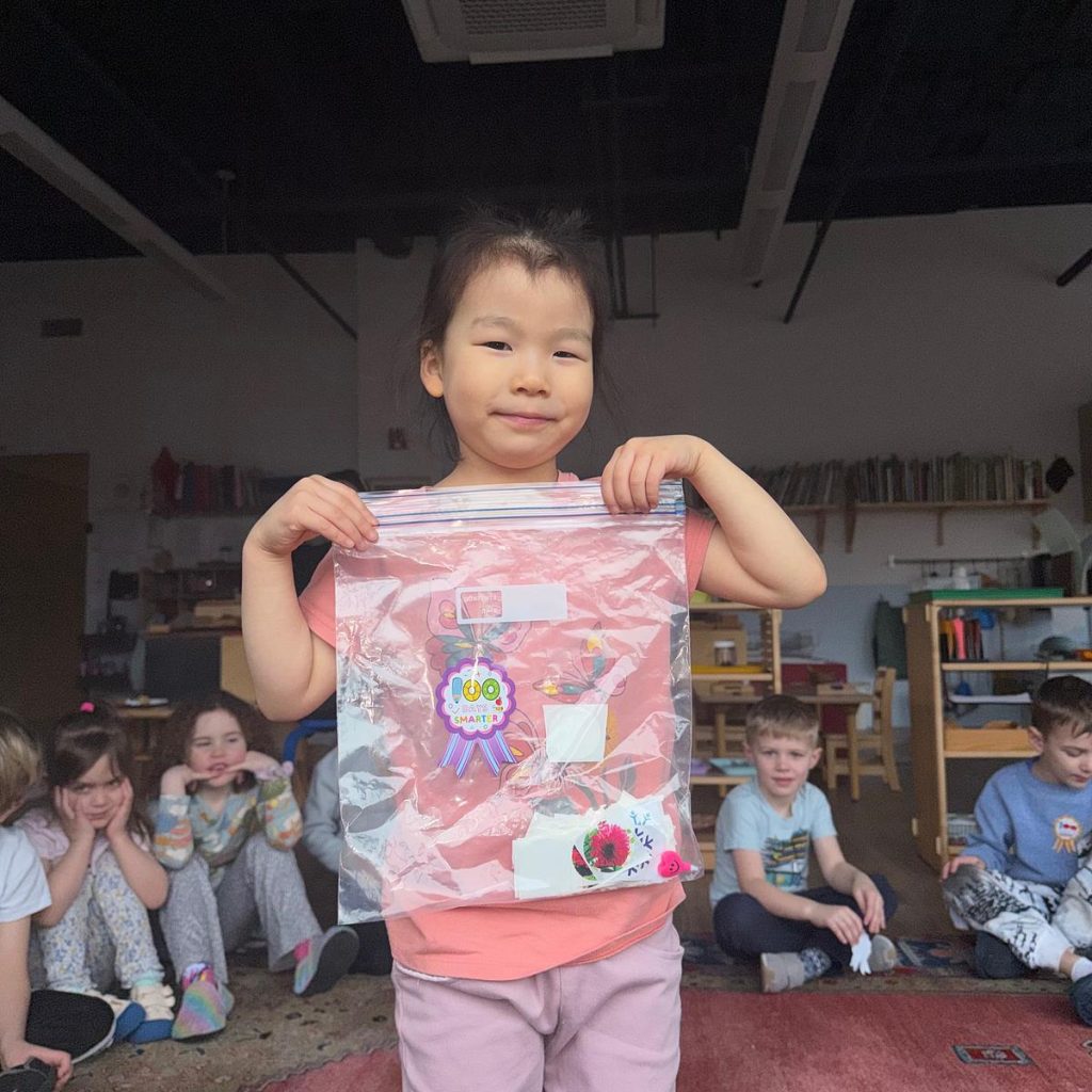 The Willow Tree Community had a fun time celebrating the 100th Day of School in February. Children brought 100 items in a ziplock bag and practiced speaking to the whole class during show and tell. Every child confidently shared their 100 items, explained who they counted with at home, and described how they reached 100.