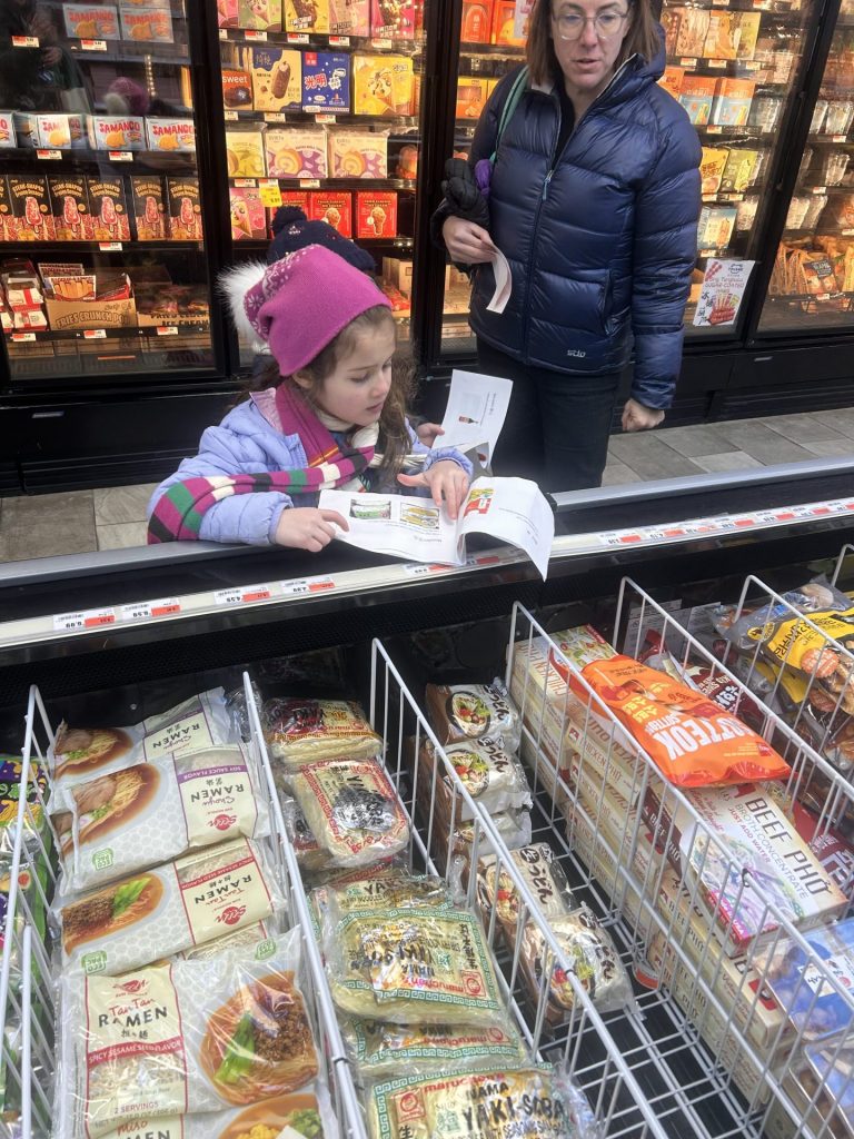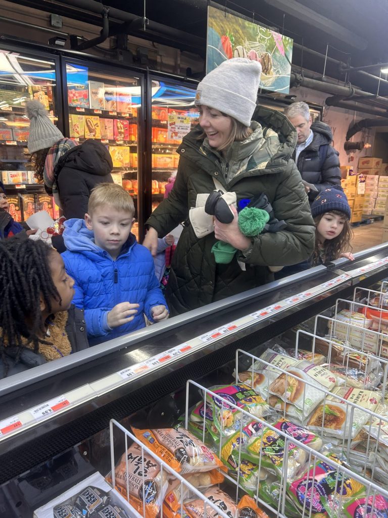 Children had a snack of fruit smoothies (mango and strawberry) from the Mayflower Café, while children and parents waited outside. Chaperones helped portion the smoothies into small cups for the children. The first real chance to warm up from the cold came once the children and chaperones entered You & Me Market, where the scavenger hunt was the highlight of the trip.