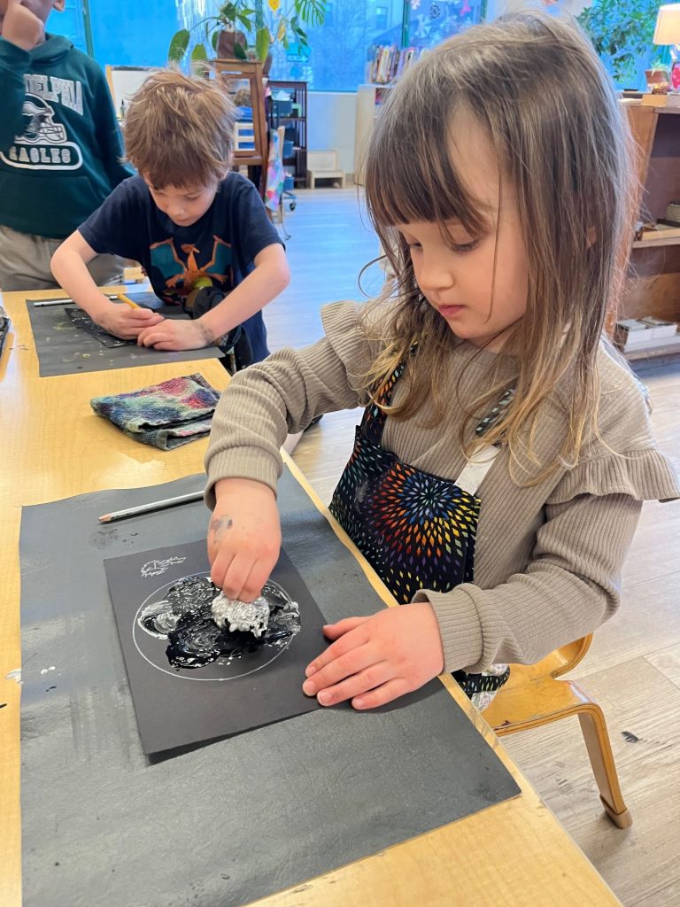 The Magnolia Tree Community learned about the moon because there are several holidays in February that relate to the moon-Lunar New Year and Ramadan. Children worked on moon related crafts. There are also several books in the classroom library that explain the relationship between the moon and the holidays as well as research books about the moon.