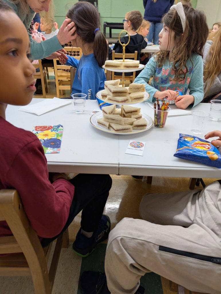 In late January, Kindergartners also gathered to learn about England and Ireland, which was hosted by the Shanahan (England) and Lawless (Ireland) families.