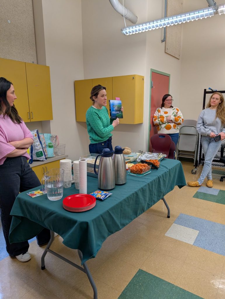The Shanahan family shared a special connection to the day by bringing in an old family photograph of their ancestors from England. After lunch, students decorated paper teacups, listened to an Irish story, and learned about Irish culture. The lunch wrapped up with a fun Irish jig.