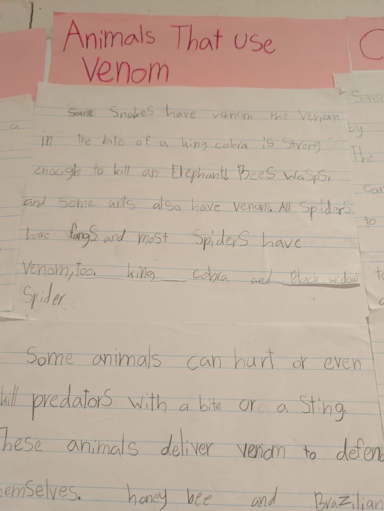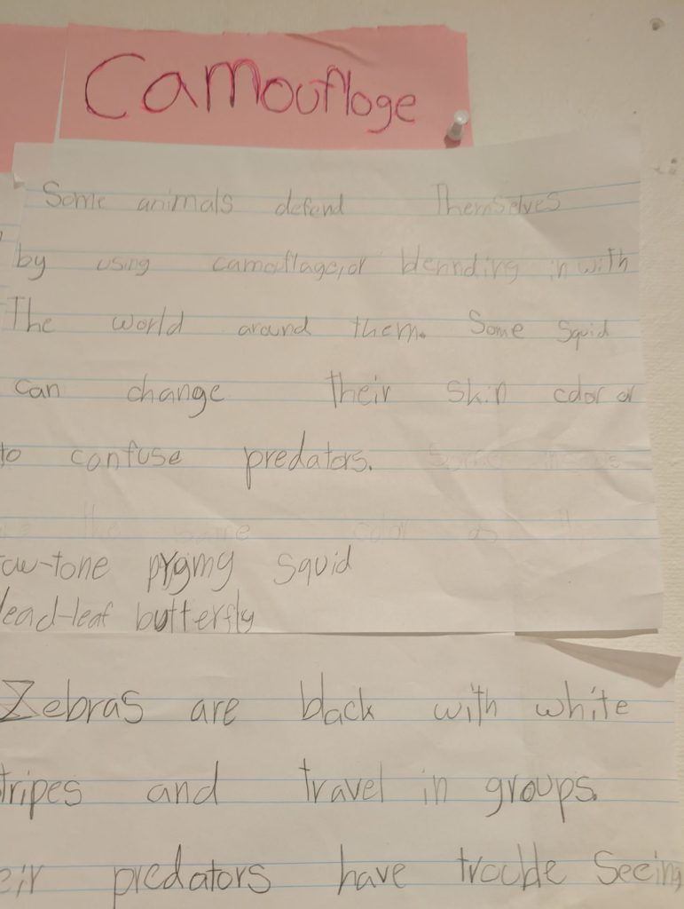 “I am researching animal defenses in class and the spikey crab showed me that no one goes near it because of its spikes.” – Second Grader