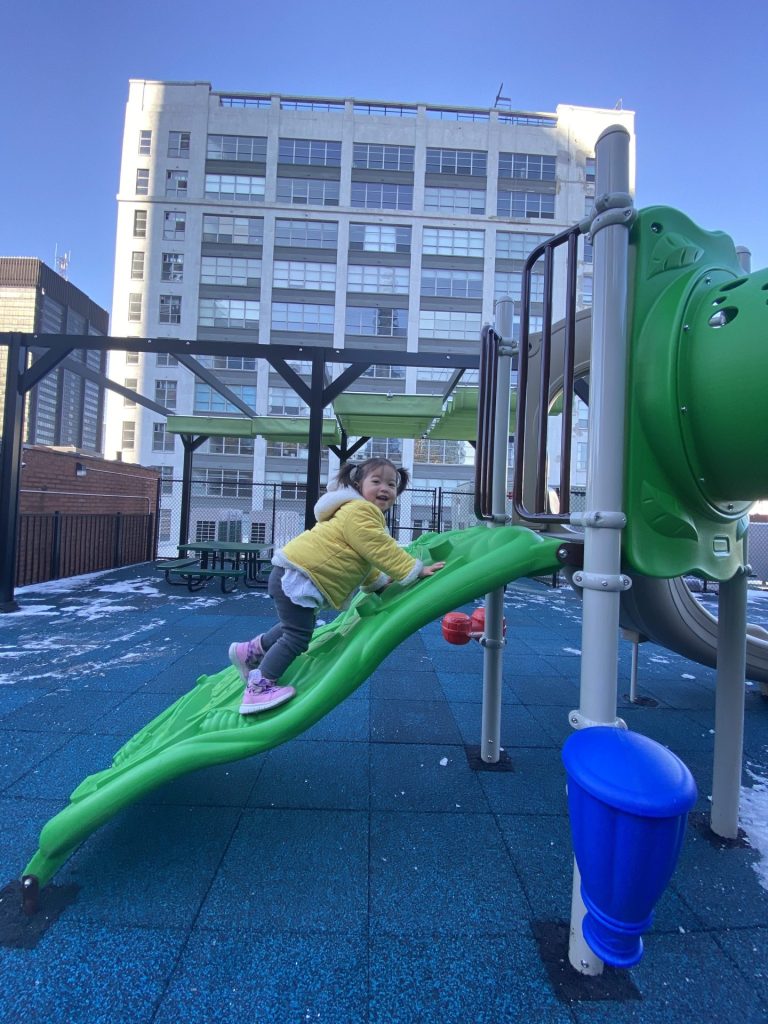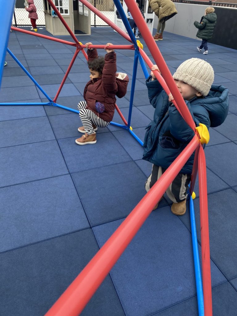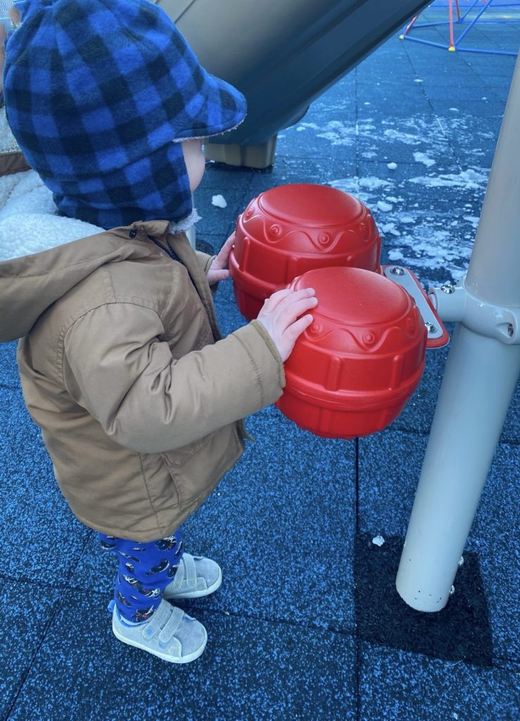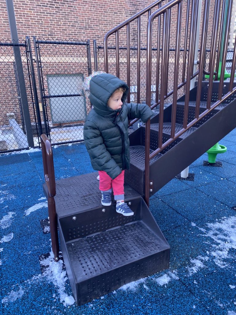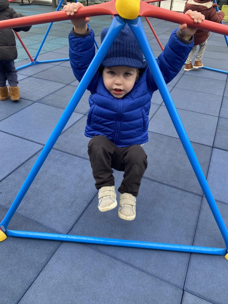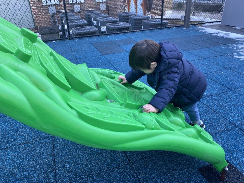 The playdeck is open!!! We are so unbelievably excited to be able to go outside to play. The children enjoy hanging from the climbing dome, walking up the stairs of the climbing structure, sliding down the slide, serving pizzas and ice cream through the playhouse windows, dancing along to music, and watching the trains go by.