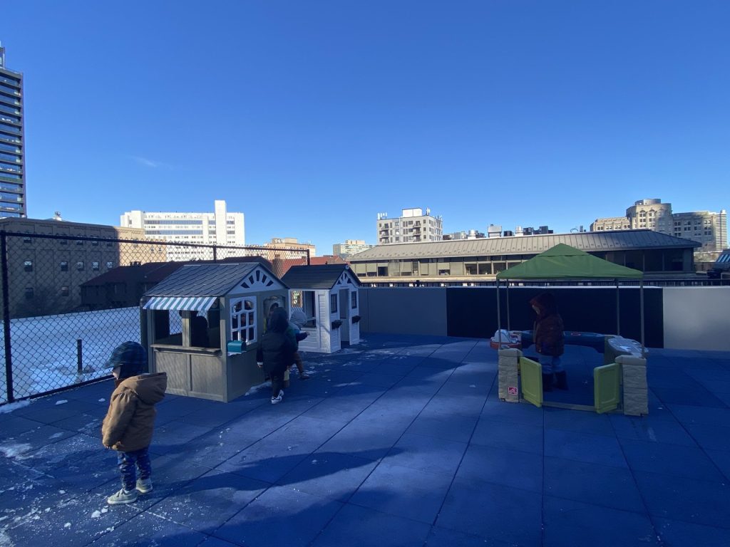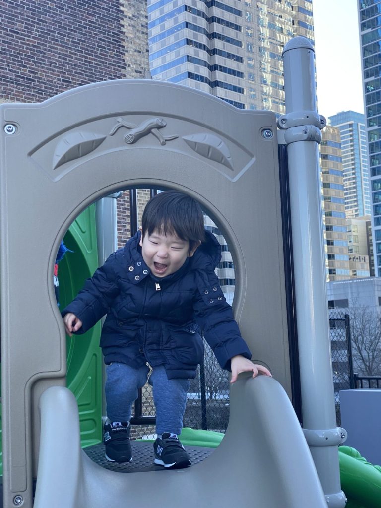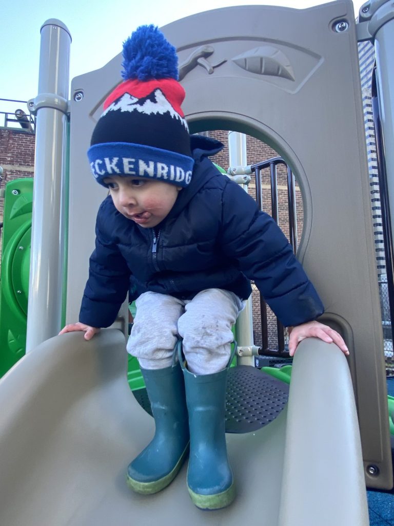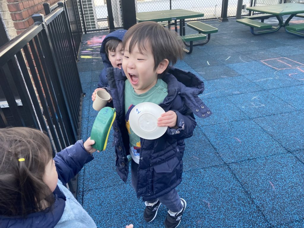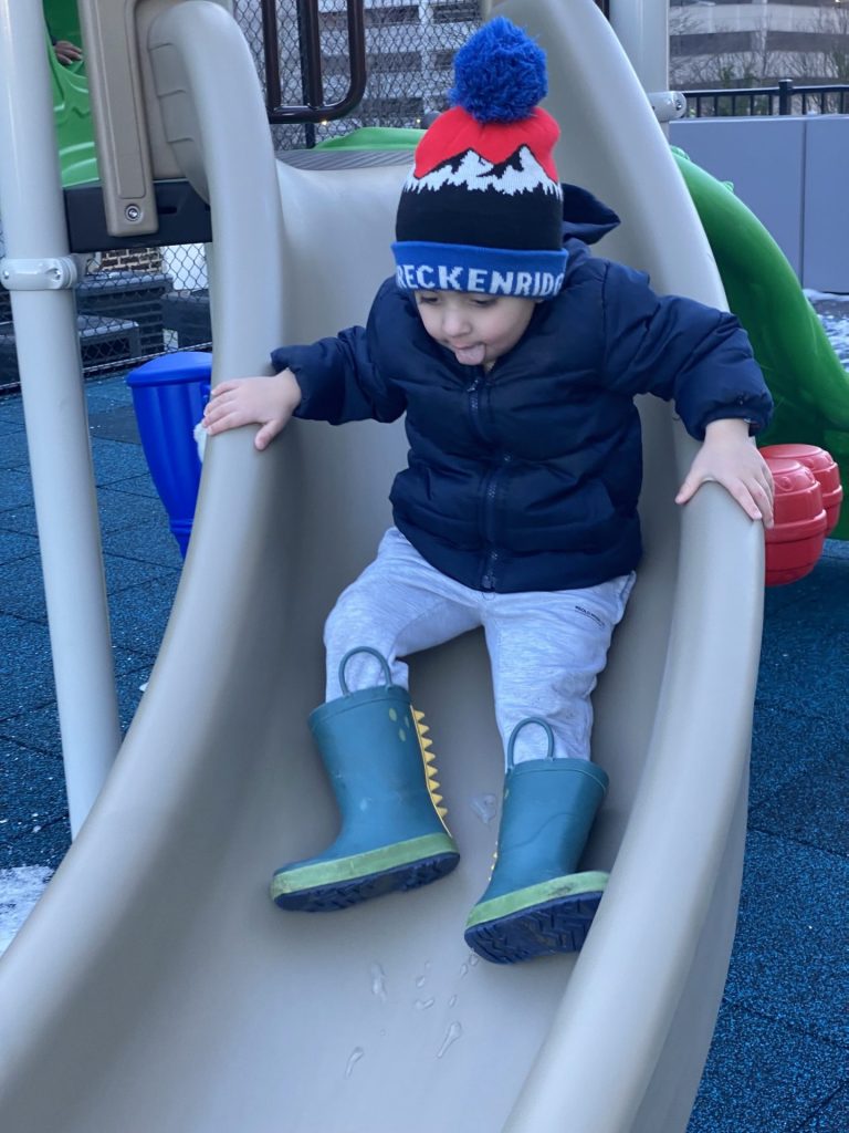The playdeck is open!!! We are so unbelievably excited to be able to go outside to play. The children enjoy hanging from the climbing dome, walking up the stairs of the climbing structure, sliding down the slide, serving pizzas and ice cream through the playhouse windows, dancing along to music, and watching the trains go by.