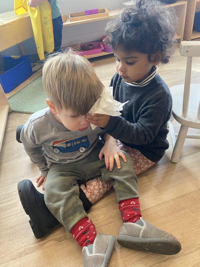 Toddlers are doers and have an innate desire to move. To move! A new power they now have. Before this, they were dependent upon adults for everything. Now, they can stand, walk, lift heavier objects, and reach higher objects; with more movement and practice, they become stronger, faster, and more balanced. As adults, we have mastered moving (for the most part), but Toddlers are living in their development as it happens. Their new ability to move and become stronger, paired with their intense desire to explore, may lead to some… “oops” moments. They will run and fall. They will climb and knock something over. They will discover throwing and maybe break a glass. Our little explorers and scientists can be clumsy and oftentimes disorderly.