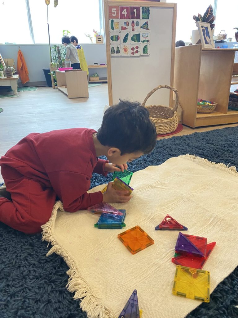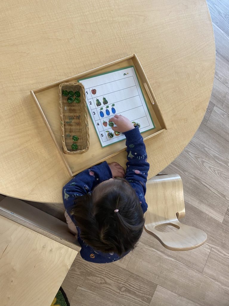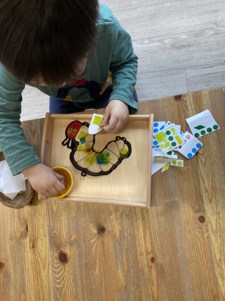 The children have been engaged with the work. They have been in such deep focus during the work cycle, I was able to move a tray from the shelf to a table without distracting the child. They continued to work and move along with the tray to the table.