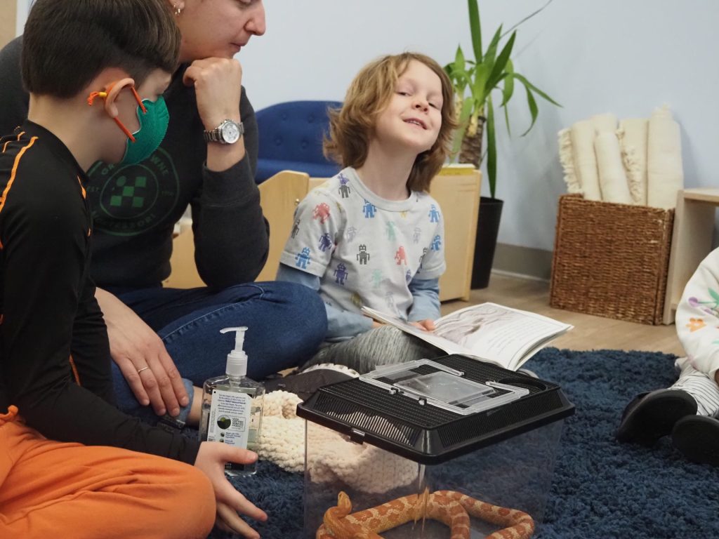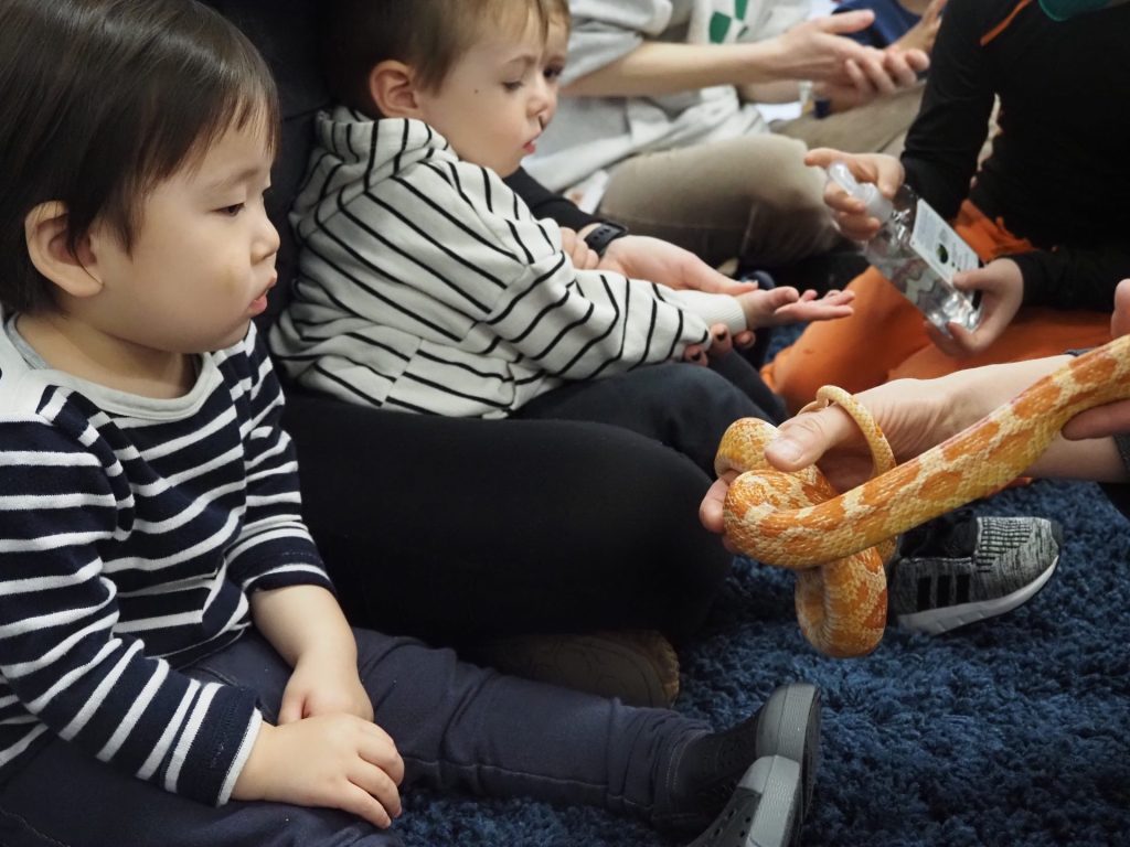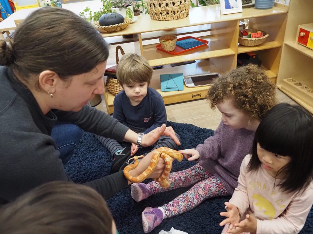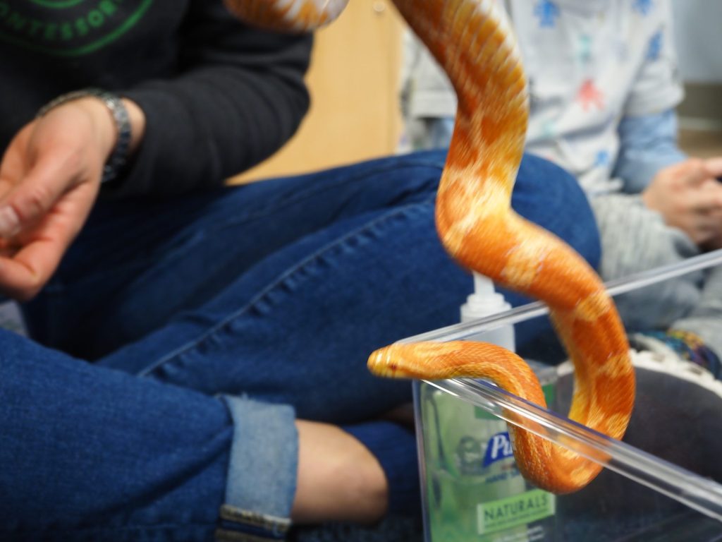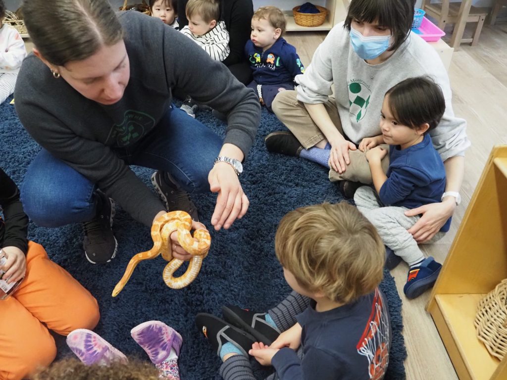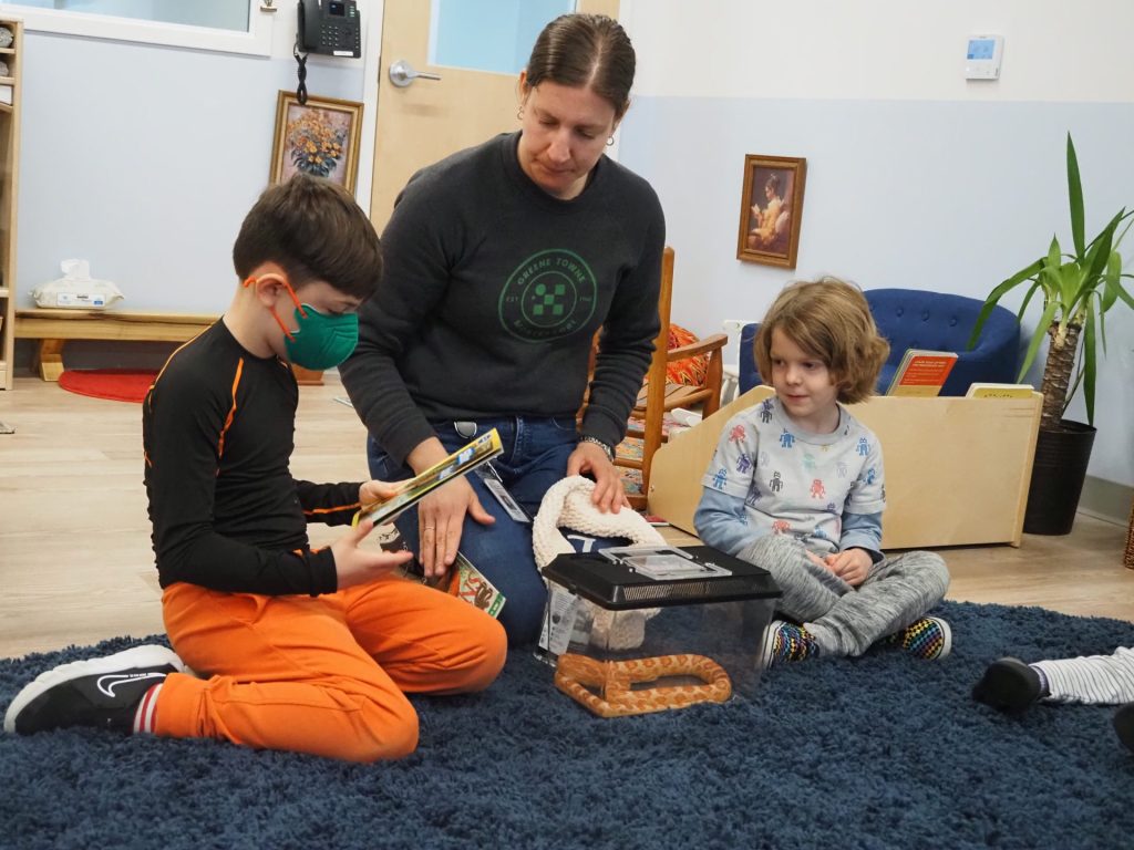 Another highlight from this past month was inviting Ms. Shelby’s snake, Hoagie, who resides in Mr. Patrick’s room, into our classroom. The children listened as two friends read books about snakes like they use their tongues to breathe. Then the children were able to pet Hoagie and some were interested in holding Hoagie… and some were not, and that is ok too.