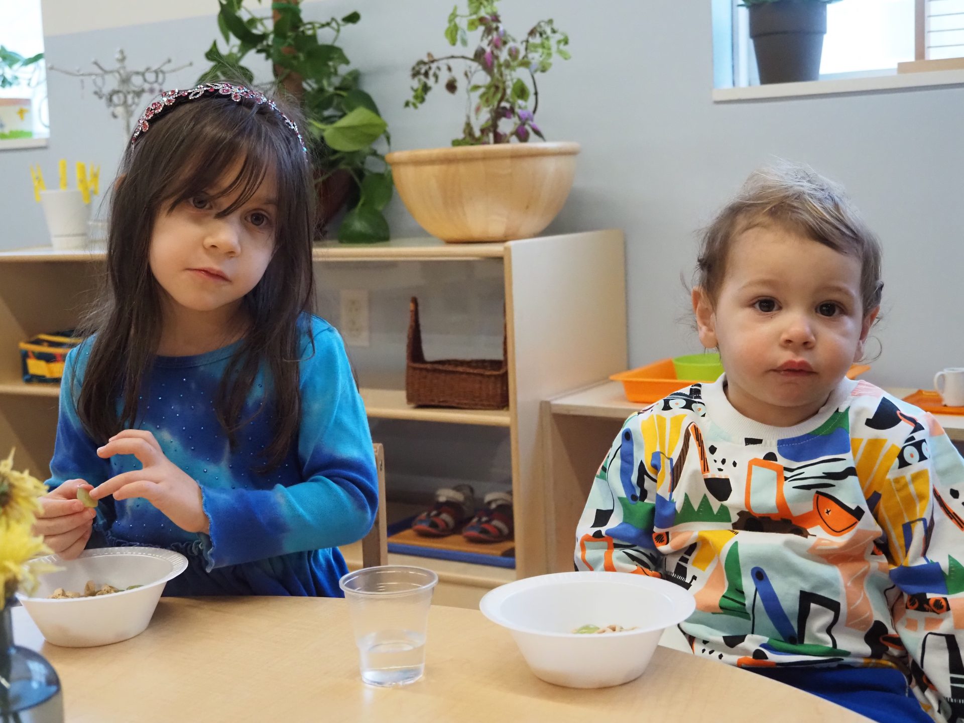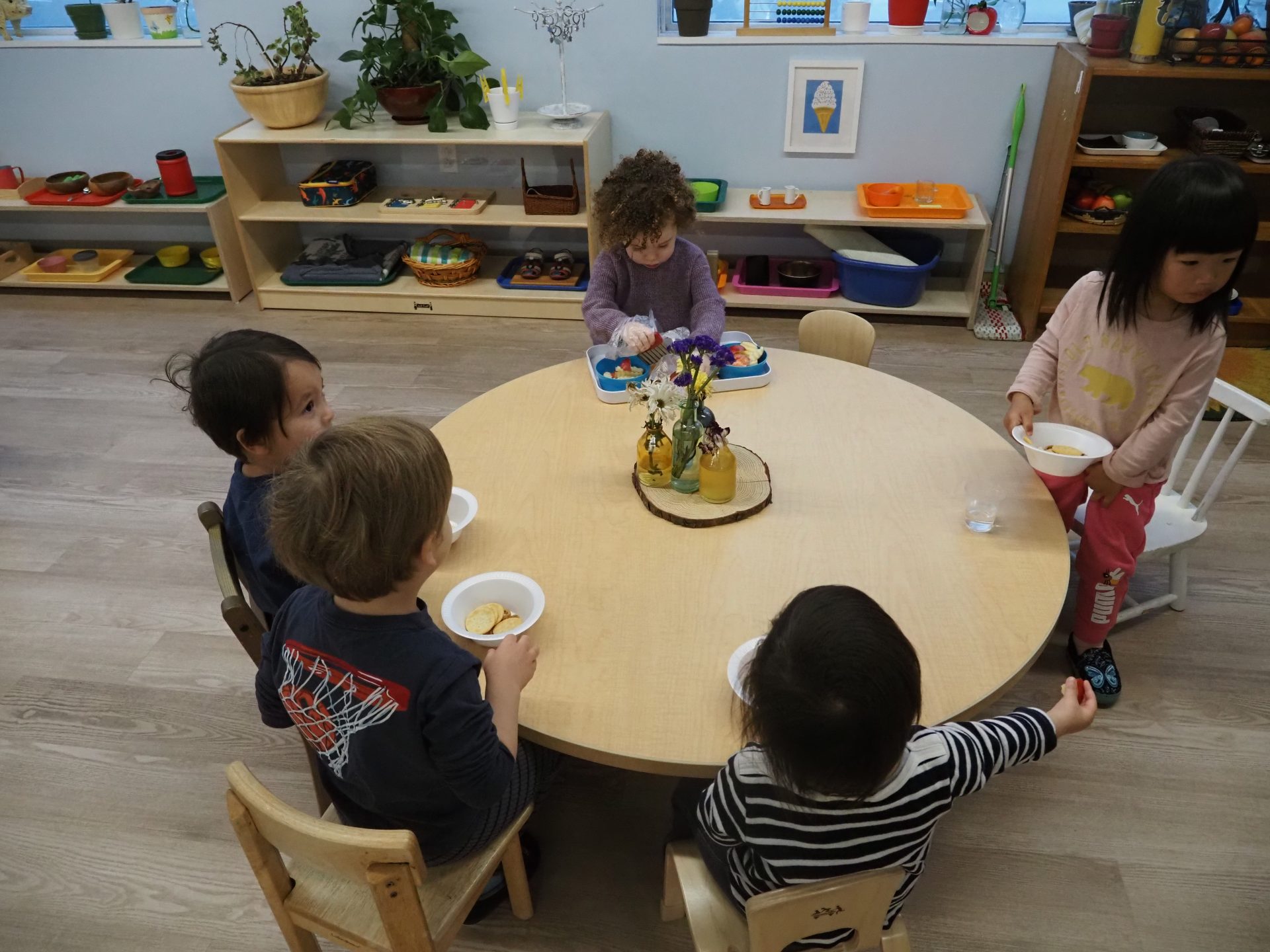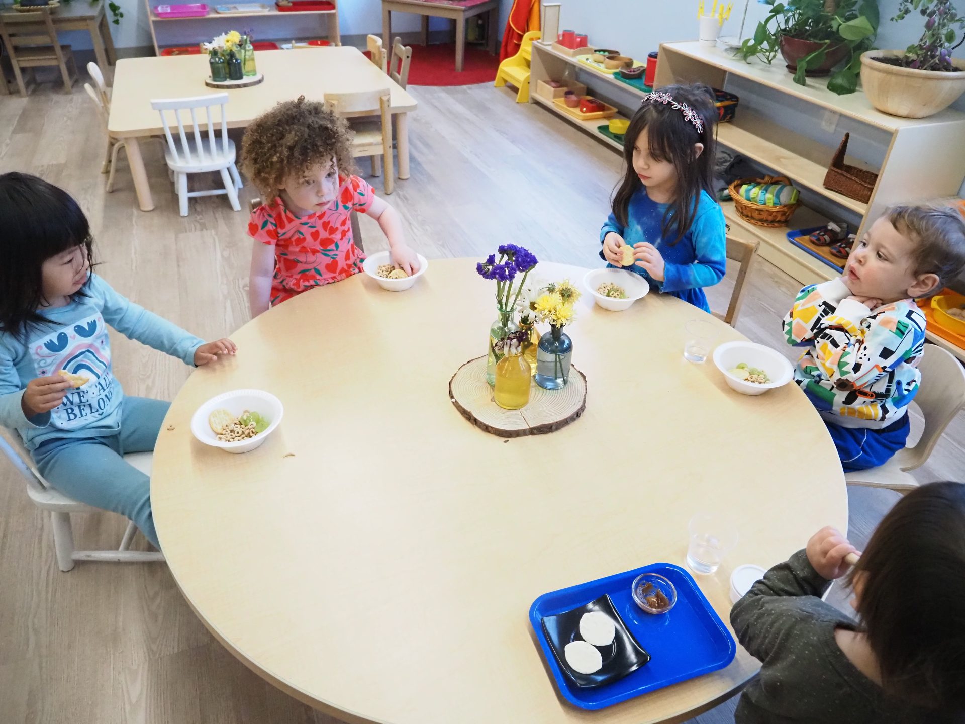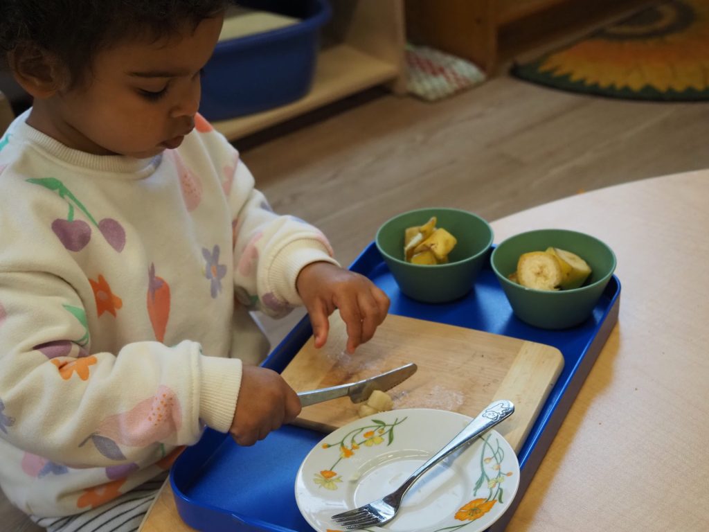 October 2022: This month’s blog highlights the food preparation work in our classroom, allergen-safe treats for birthday celebrations, ingredients and instructions for independent baking work, and how children can practice “up & over” which is how we show them to put jackets on without any assistance.