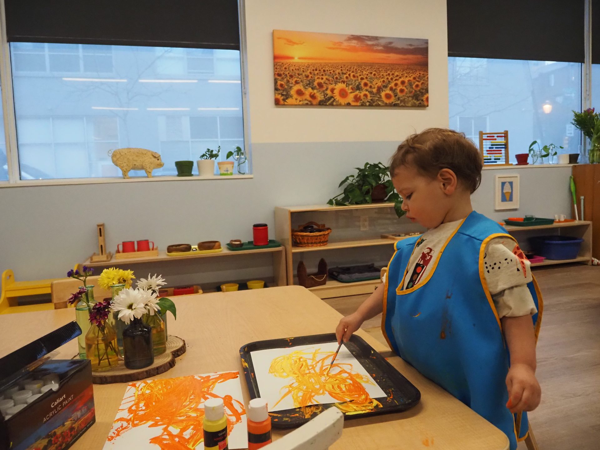 At the end of February, we welcomed our new friends into the environment. Throughout March, the children have been so kind and patient with them, and in showing them the new routines. Now they are holding hands with each other, drinking “tea” together, and being helpful friends. Their relationships are blossoming. We had a friend from Primary ADM spend the morning in our classroom and the children were enthralled with her. She had a small breakfast with us, which the children help to prepare. We also finished our Auction project!! Take a look at some of the pieces just before we added the final touches.