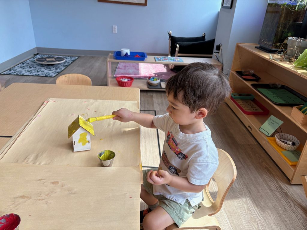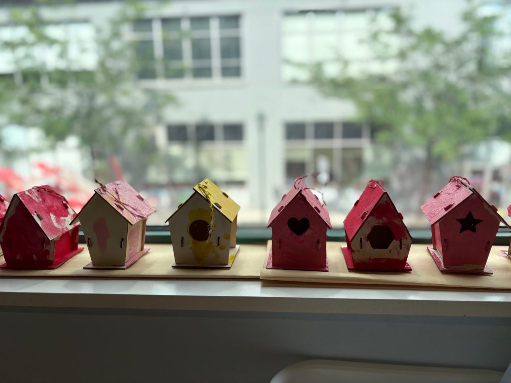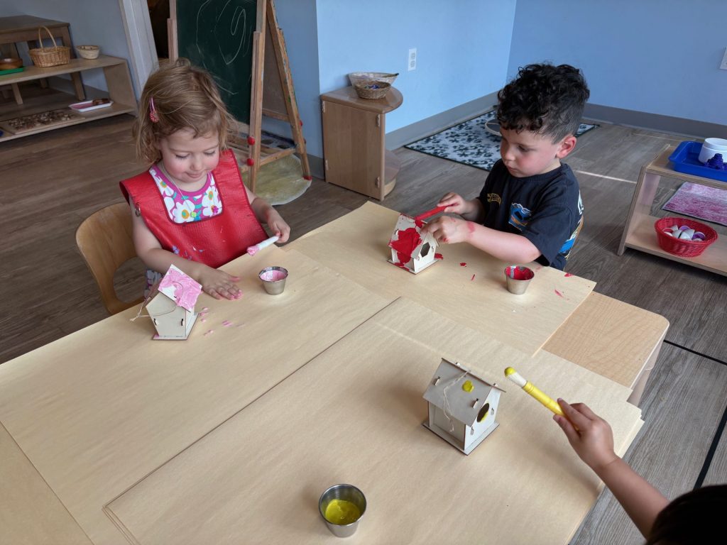 Toddlers painted bird houses. The houses were sent home along with some bird feed.
