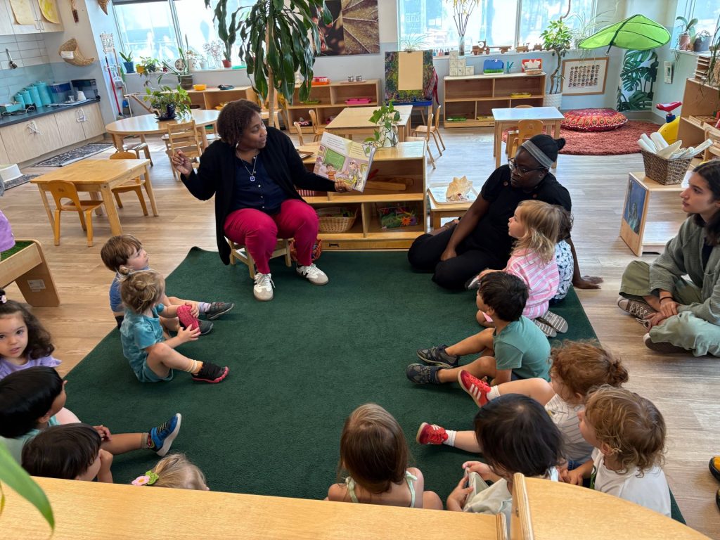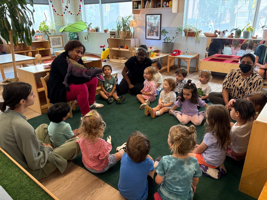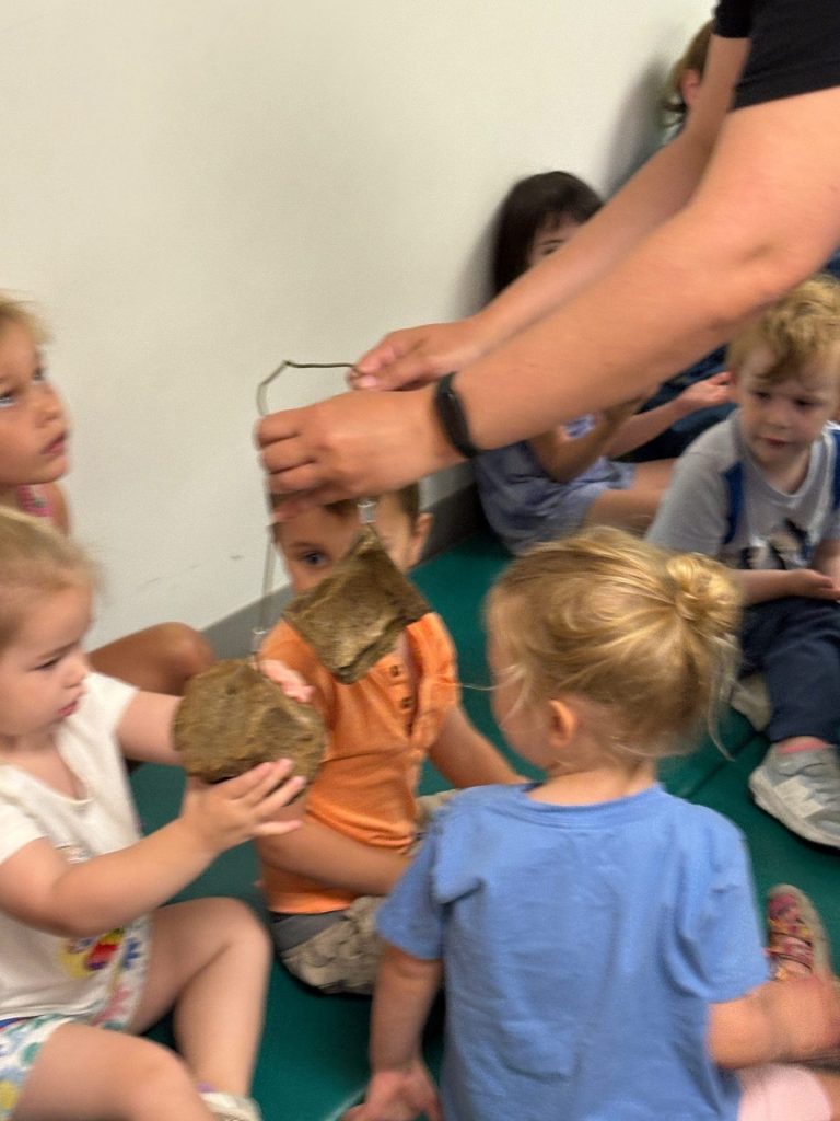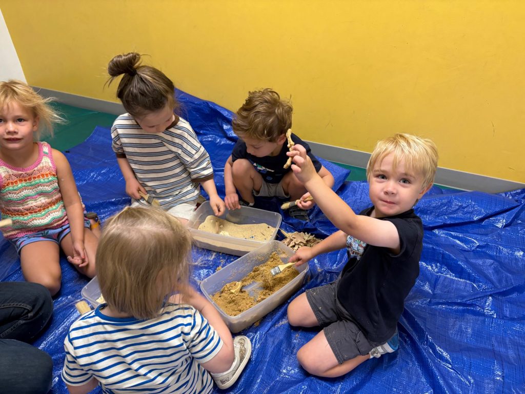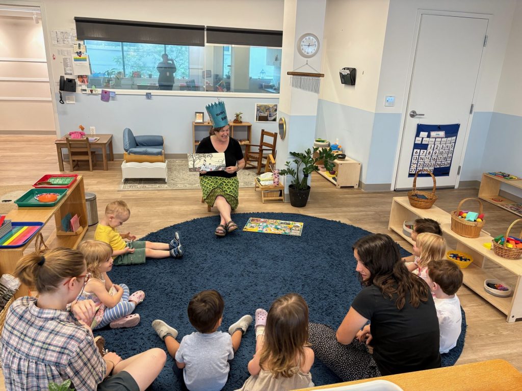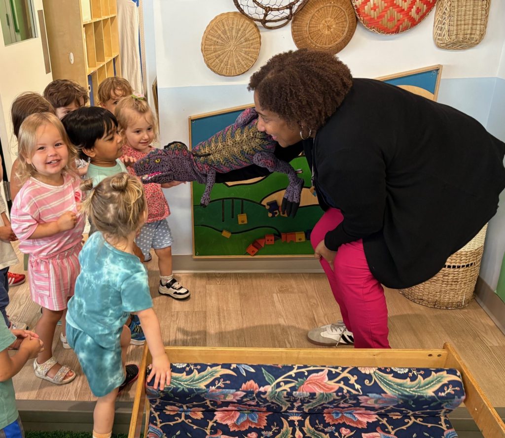 The toddlers had some special guests from our admin team members Deb, Tia, Eileen, Julie, Sarah and Amanda. They came and had circle time with the toddlers. Some highlights include a birthday celebration with Sarah and a dinosaur hunt with Deb. Big fun!
