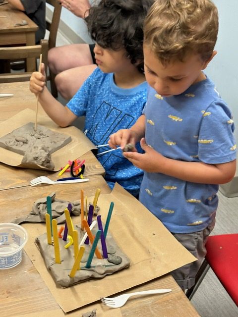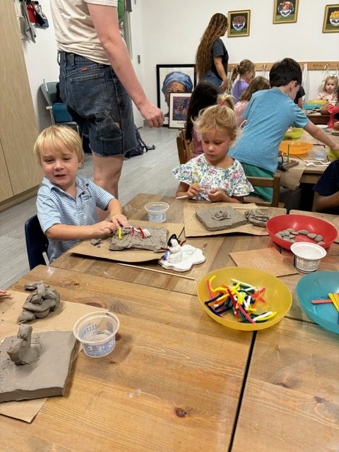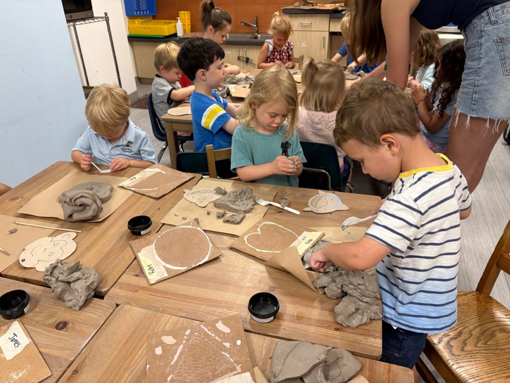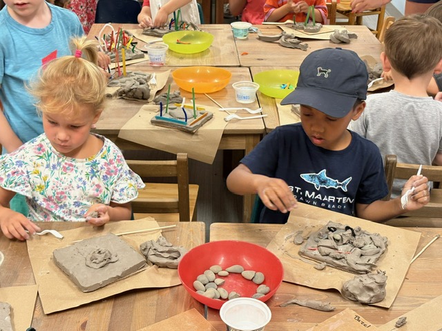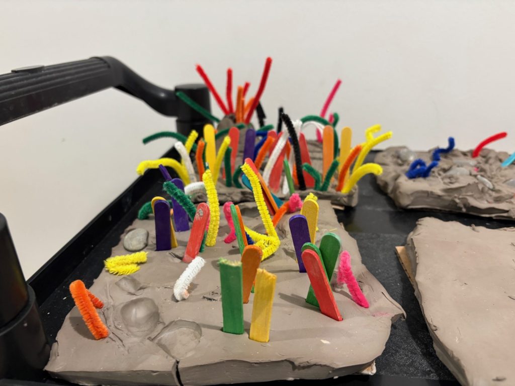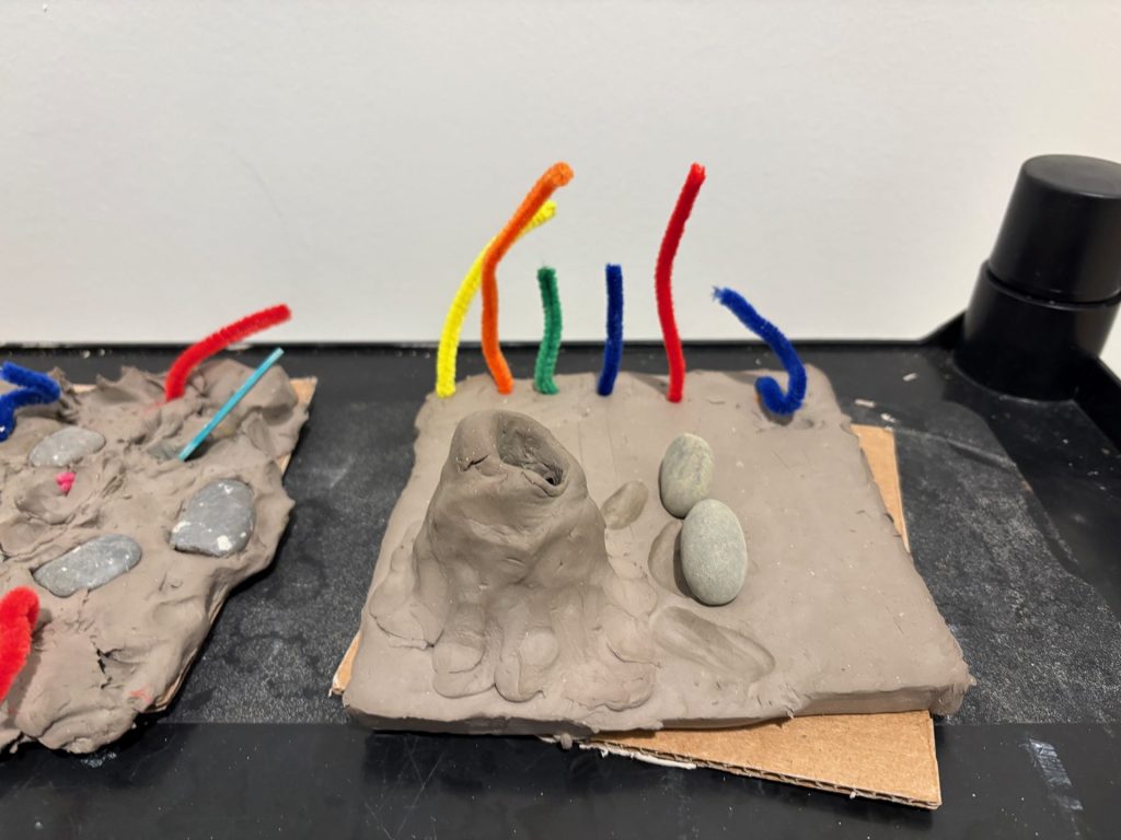 The primary children made farm animal plates and islands with Clay Studio. Some islands included rock formations and volcanoes complete with colorful greenery.