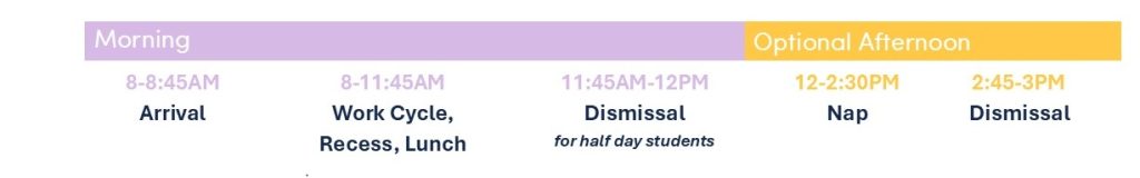 To learn more about our All Day Montessori Program and the All Day schedule, click here.