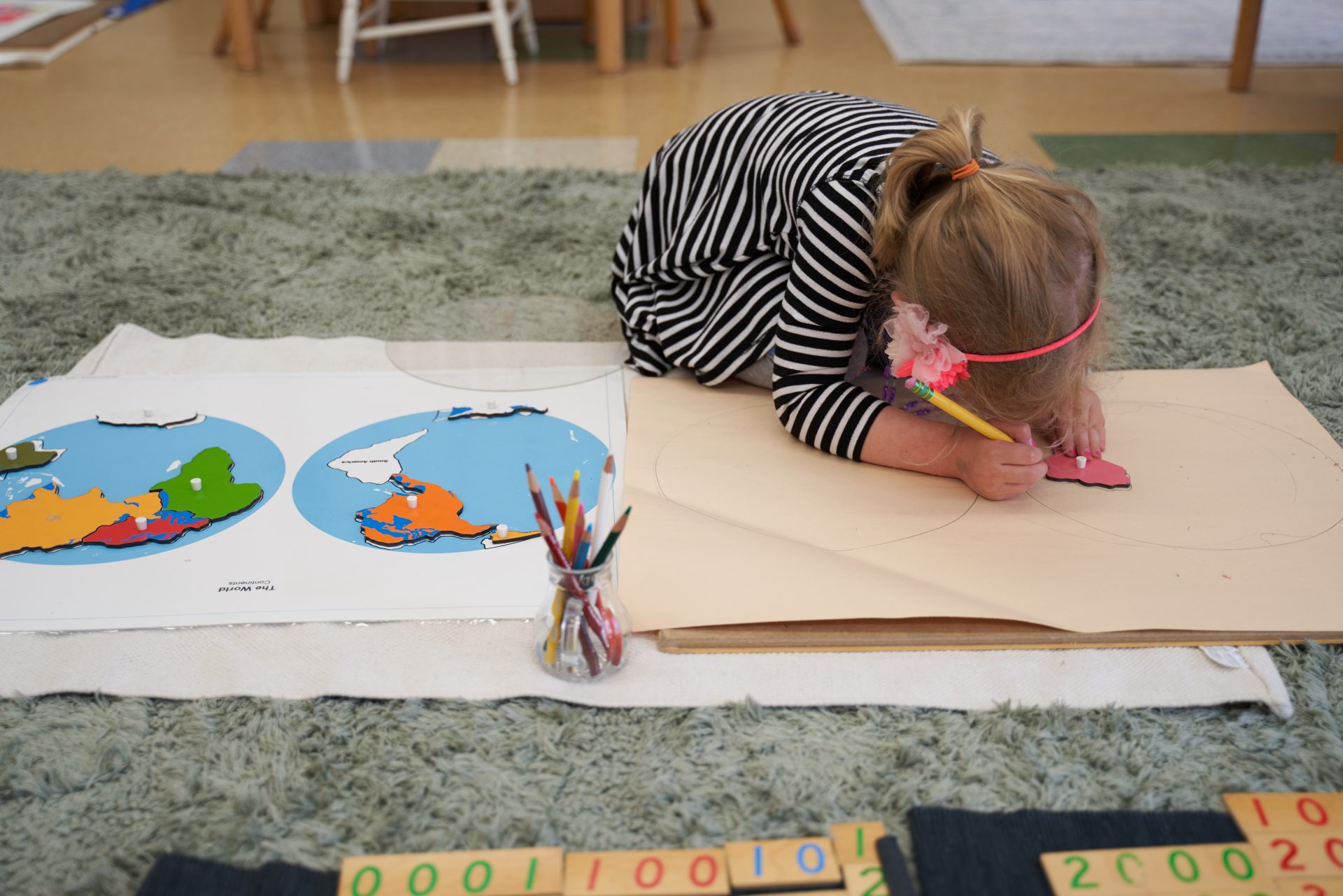 In the Kindergarten year, also referred to as the “capstone” year of the Primary level, there is so much happening. The children continue to refine the skills they have built over the previous years while deepening their understanding across all areas of the classroom.